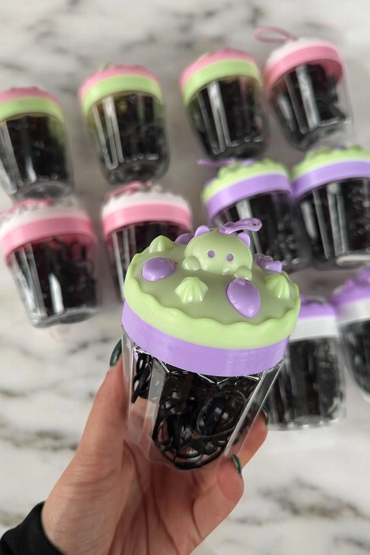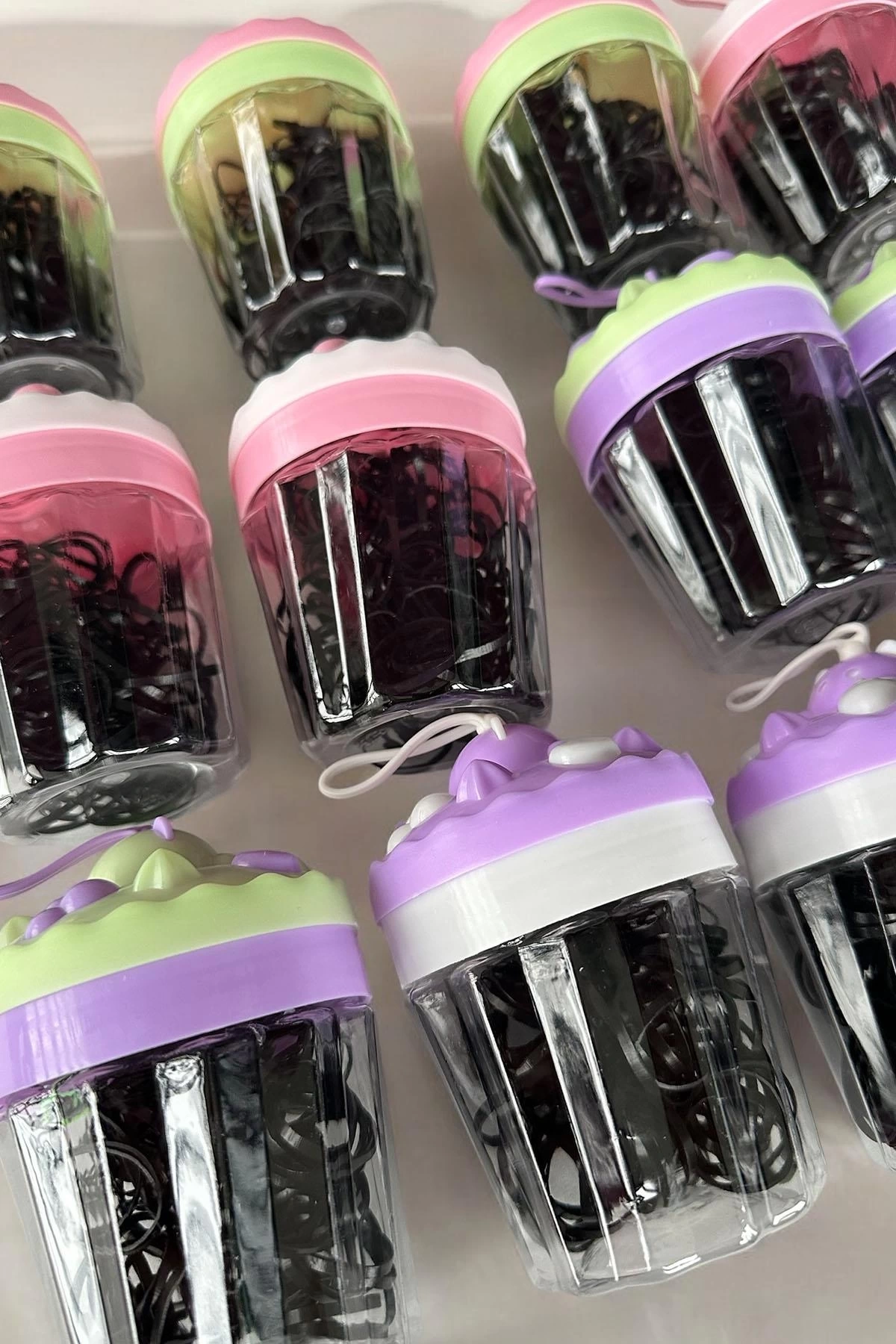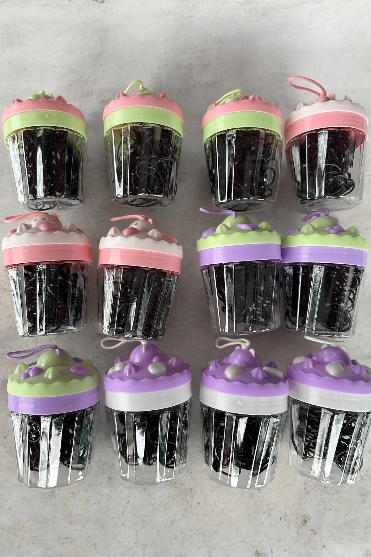 12'li Siyah Renk Cupcake Figürlü Perma Lastik Toka Set
