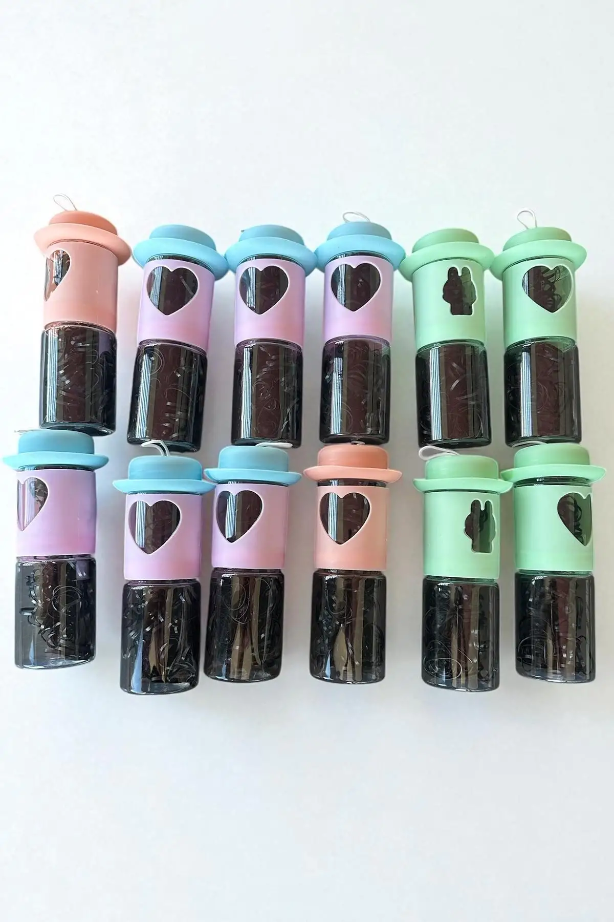 Siyah Renk Kalp Figürlü Perma Paket Lastik Toka