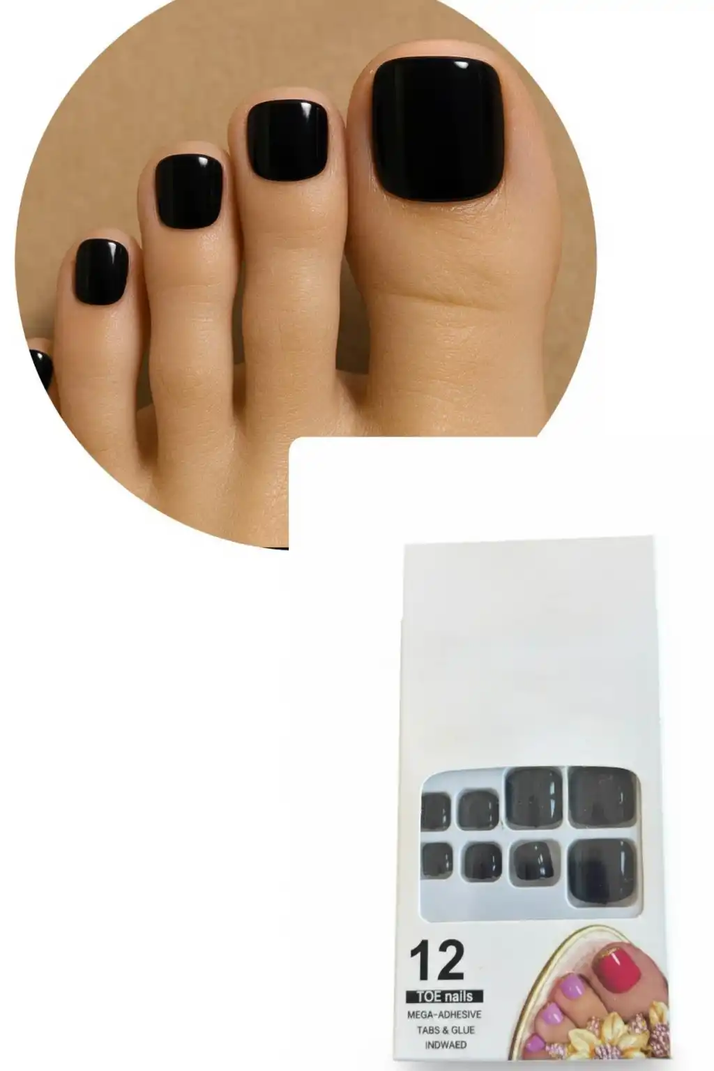 12'li Siyah Renk Takma Tırnak Set (Yapıştırıcılı)