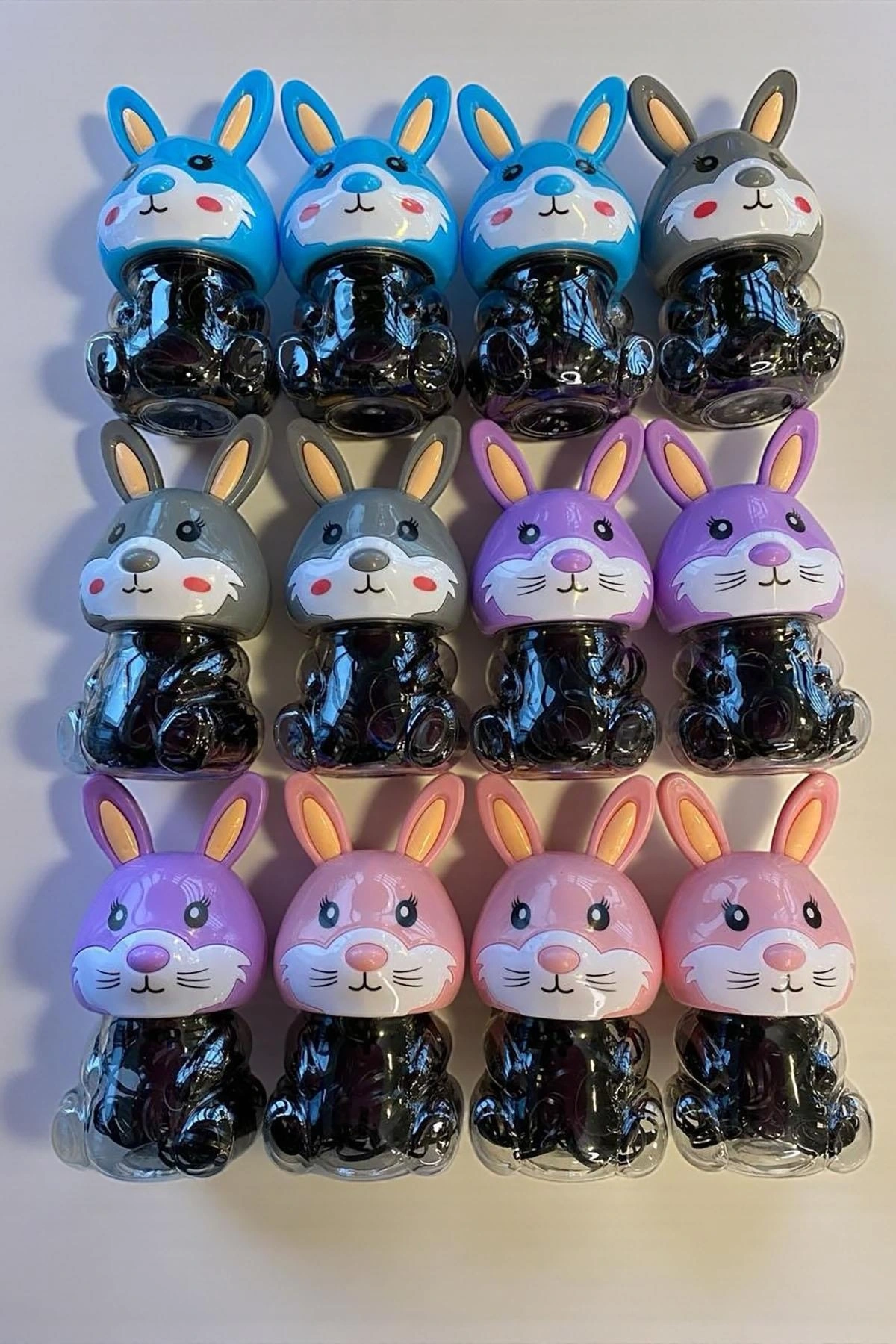 12'li Siyah Renk Tavşan Figürlü Lastik Toka Set