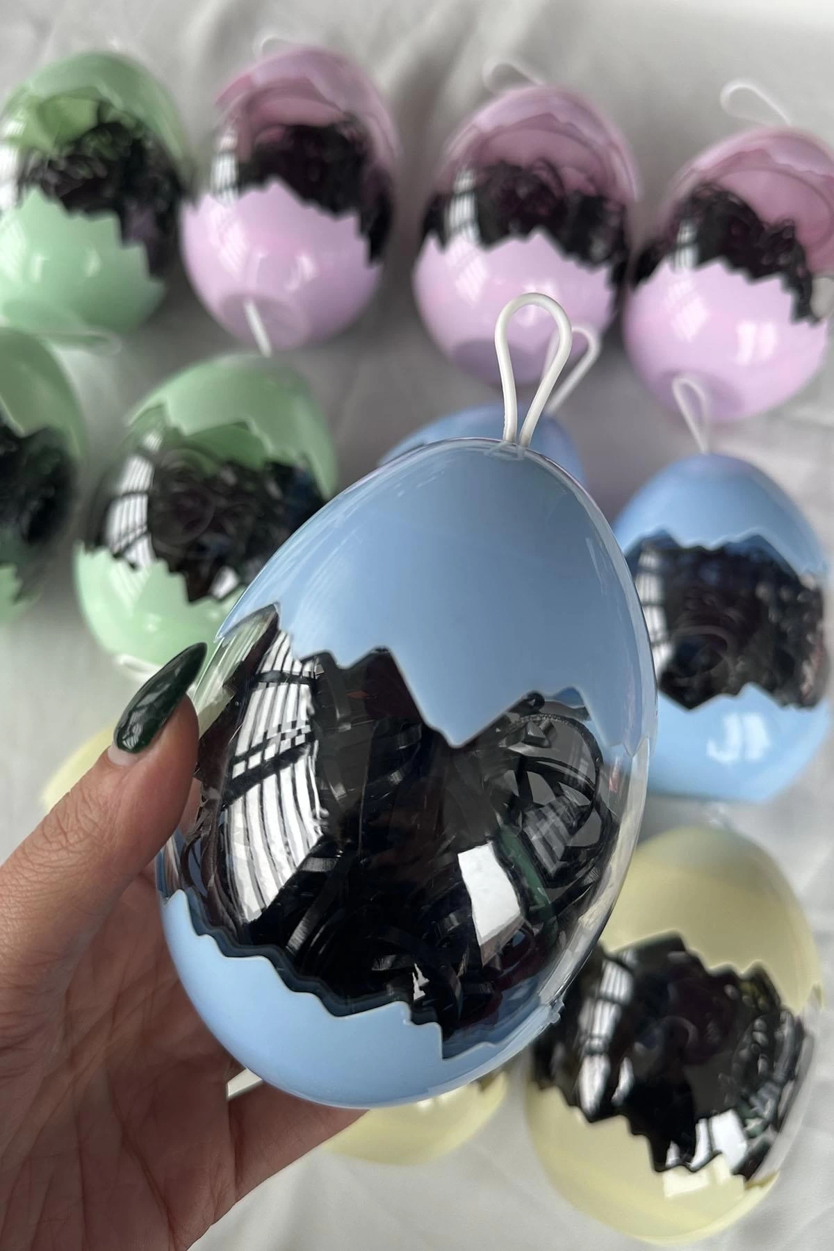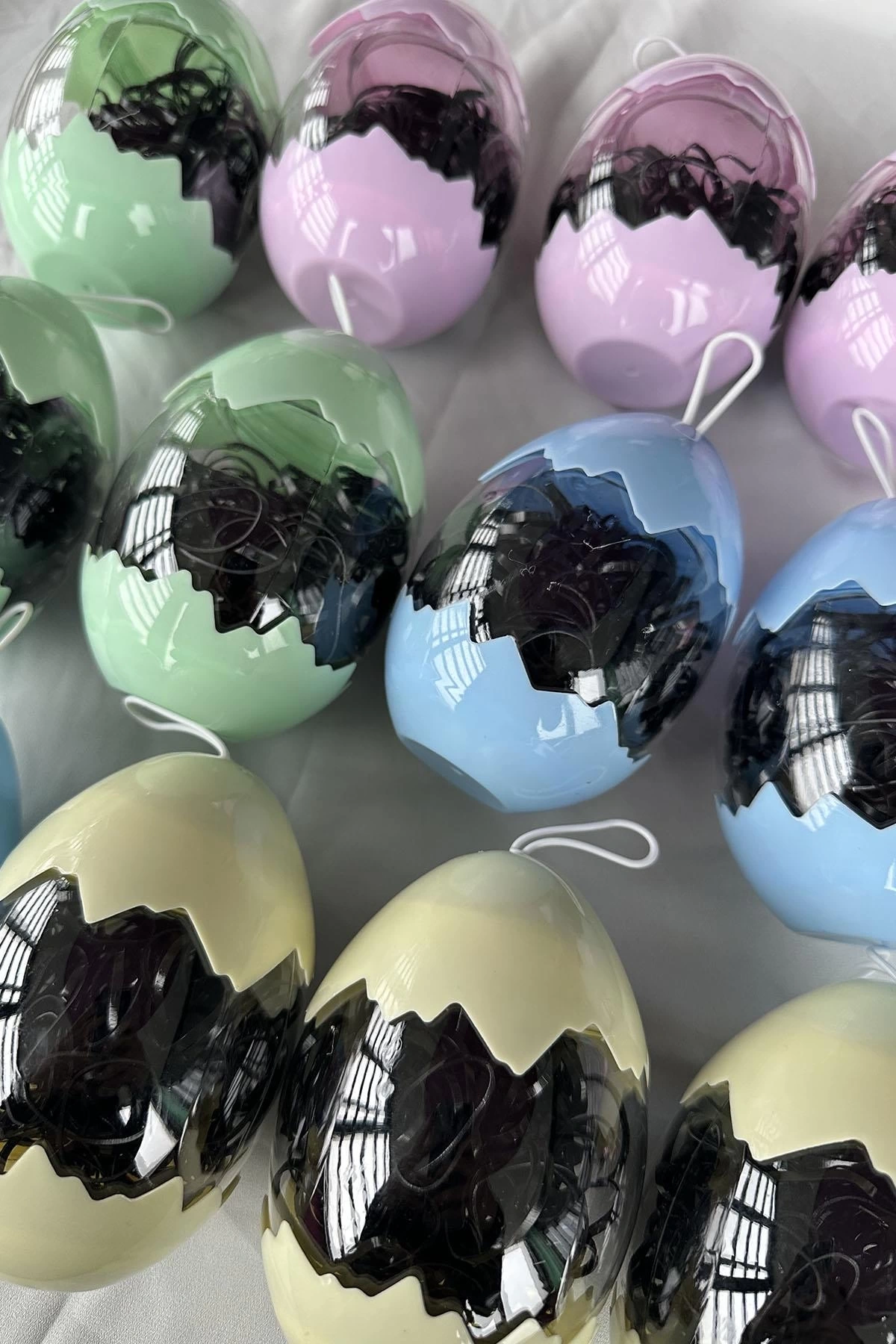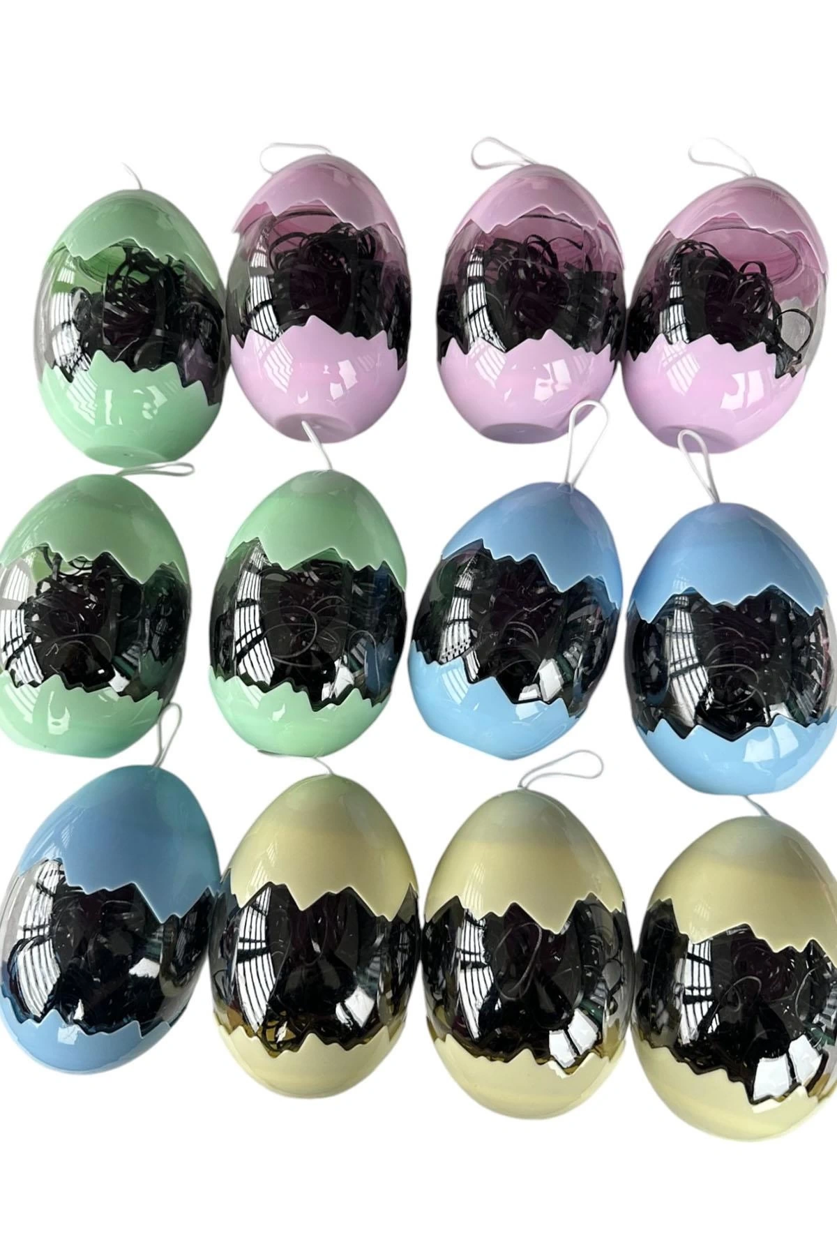 12'li Siyah Renk Yumurta Figürlü Perma Lastik Toka Set