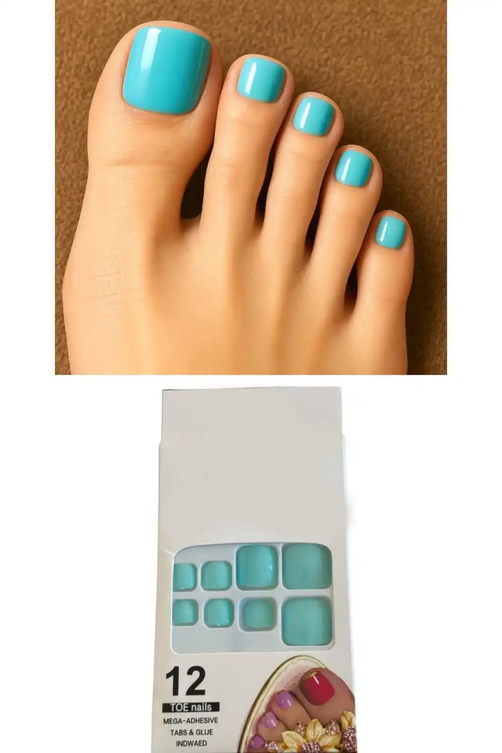 12'li Turkuaz Renk Takma Tırnak Set (Yapıştırıcılı)
