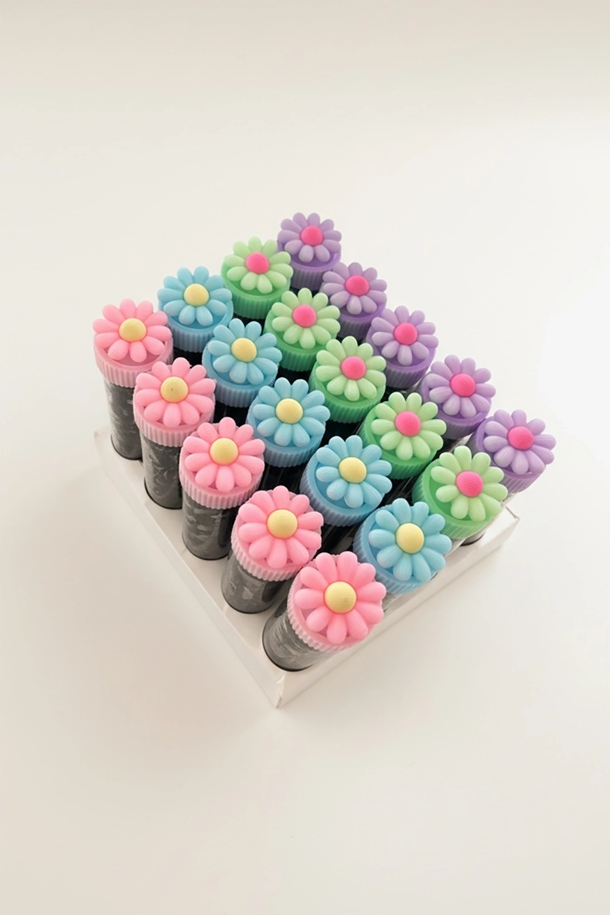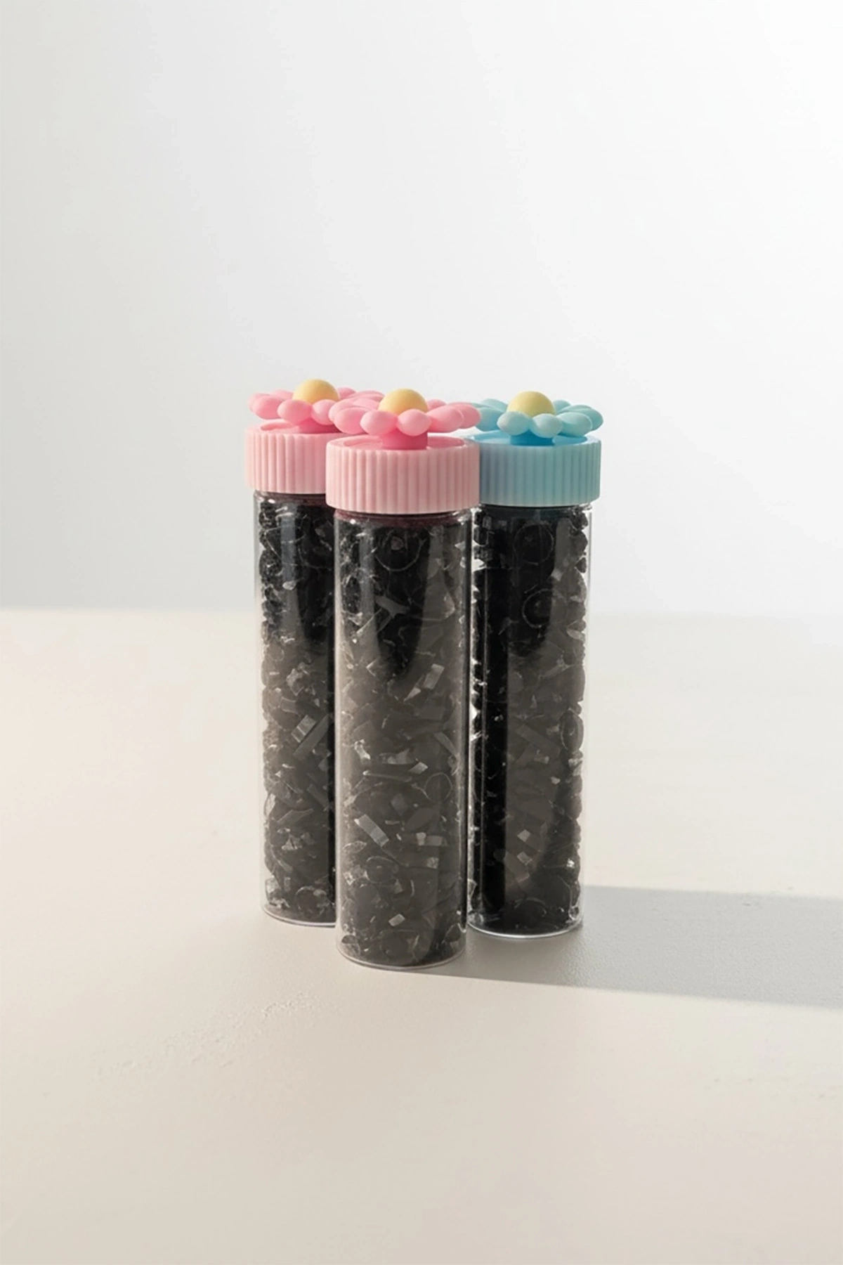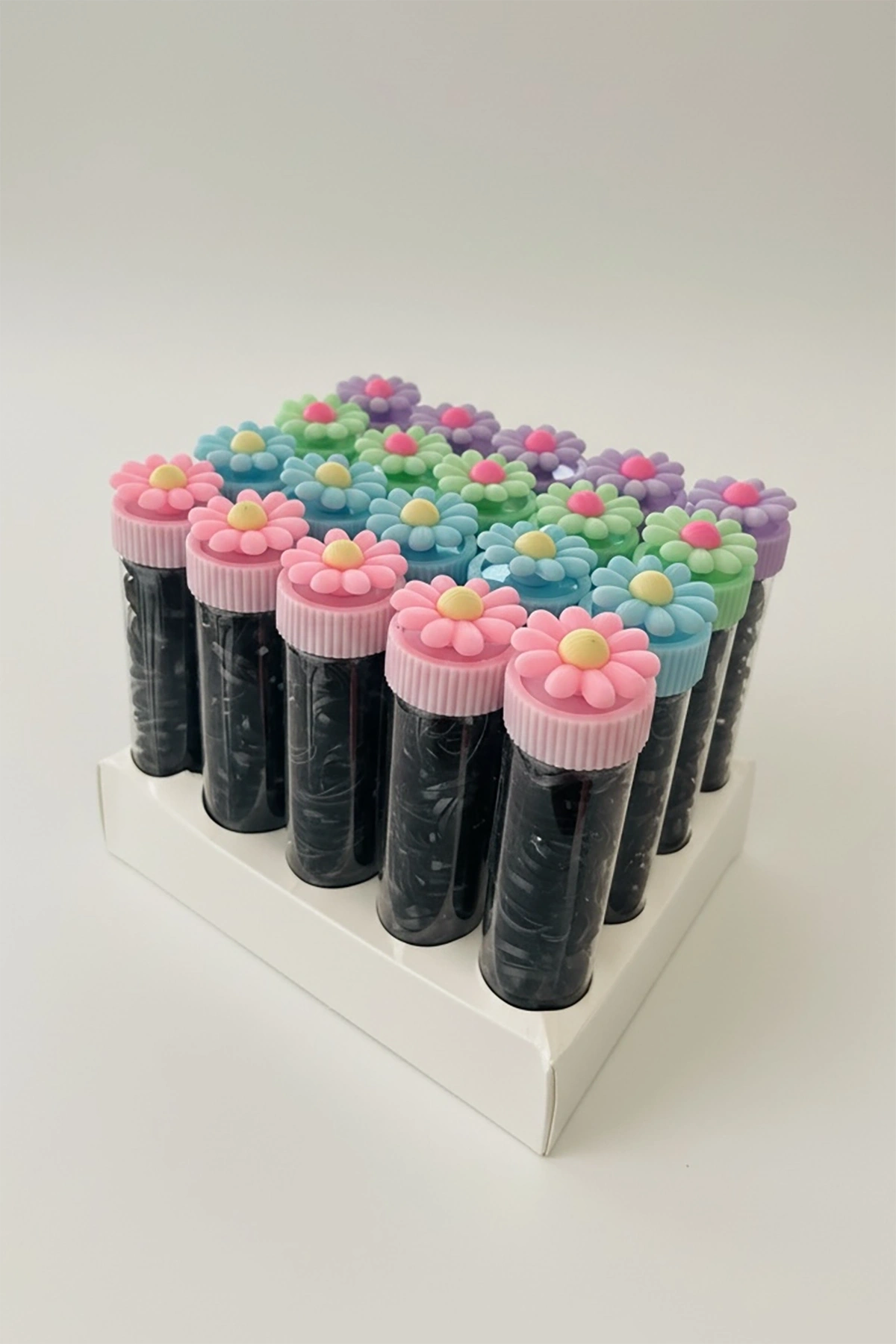 20'li Çiçek Figürlü Siyah Renk Perma Lastik Toka Set