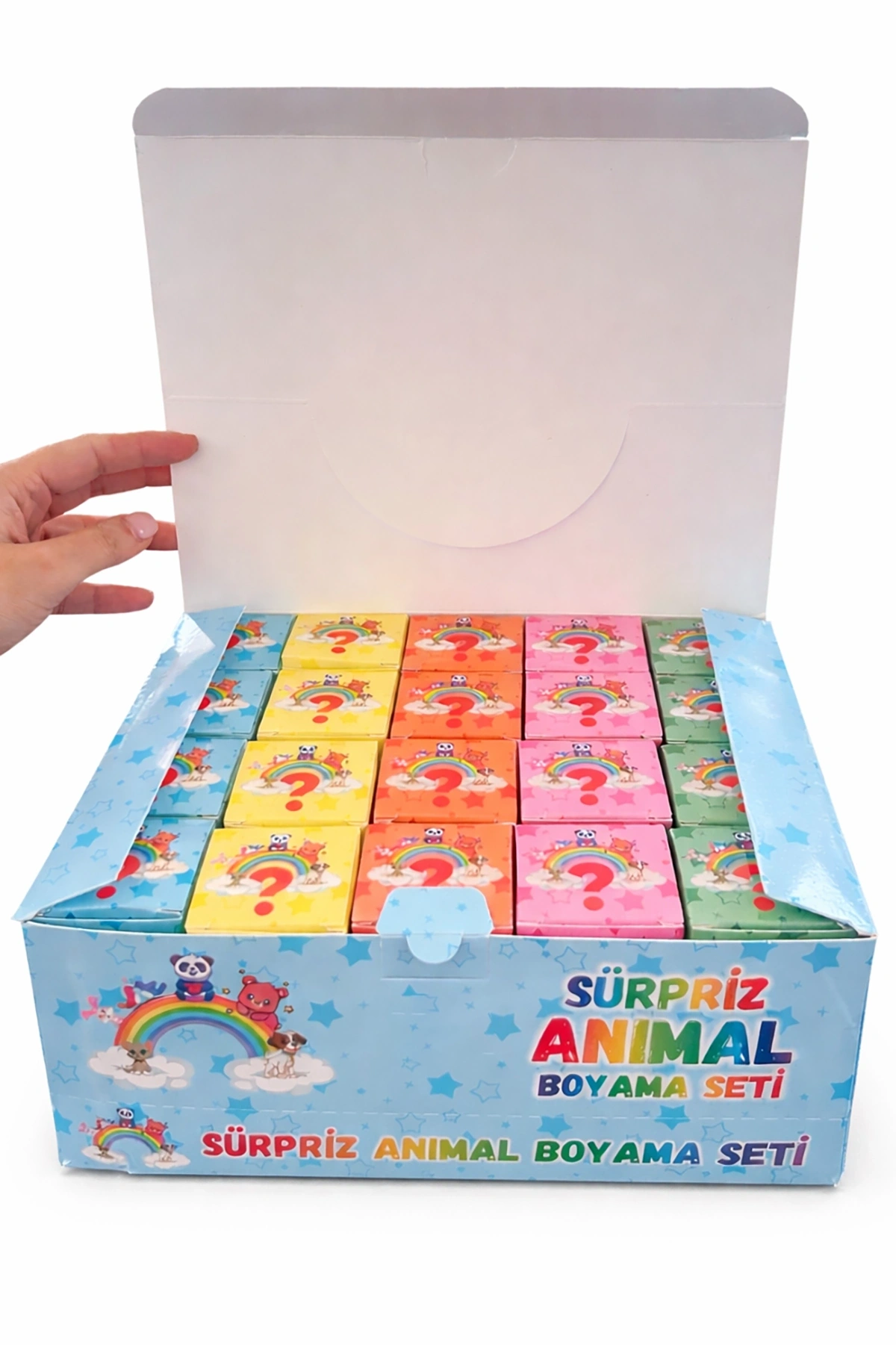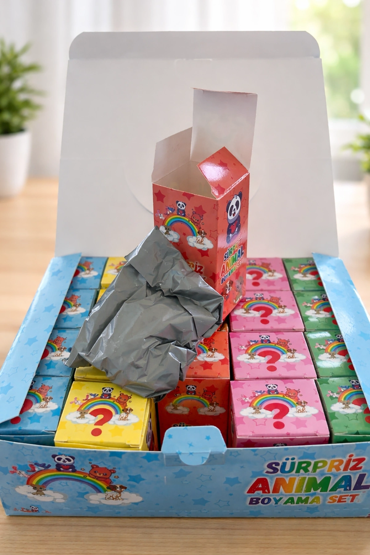 Sürpriz Boyama Kutusu, çocukların yaratıcılığını geliştiren eğlenceli ve öğretici bir aktivite setidir. Renkli ve sevimli hayvan temalı tasarımıyla dikkat çeken bu kutu, her birinde farklı sürprizler barındıran mini paketlerden oluşur. Çocuklar kutuları açarken hem keşfetmenin heyecanını yaşar hem de boyama etkinliğiyle keyifli vakit geçirir.