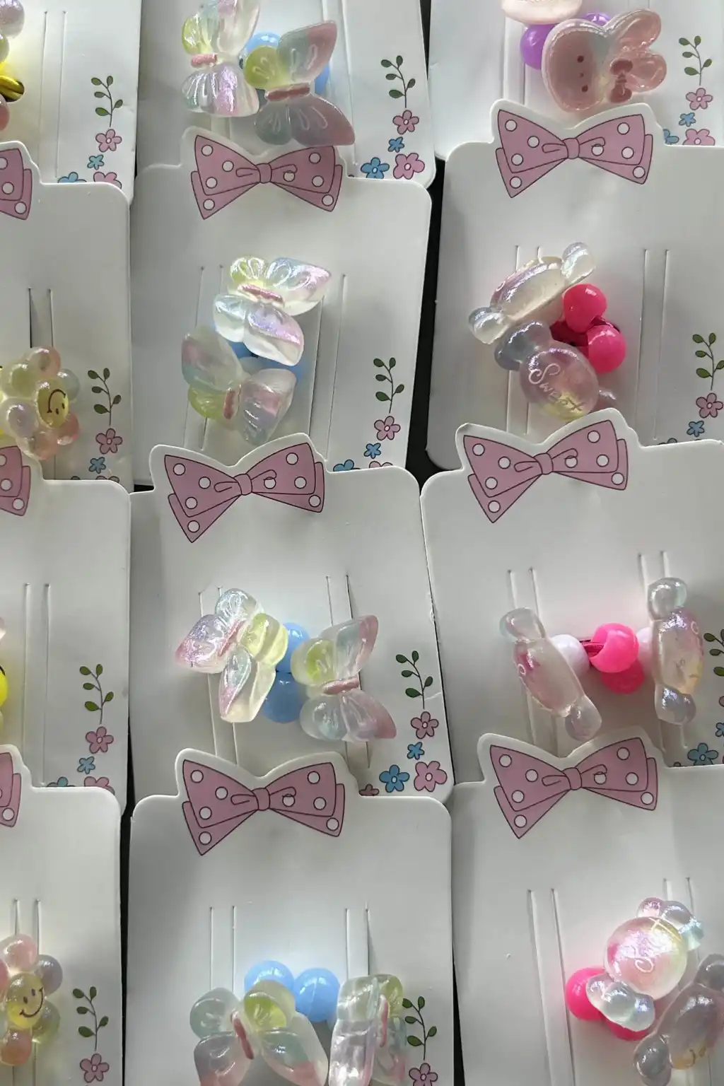 6'lı Karışık Renk Kelebek Ve Yıldız Figürlü Çocuk Mini Mandal Toka Set