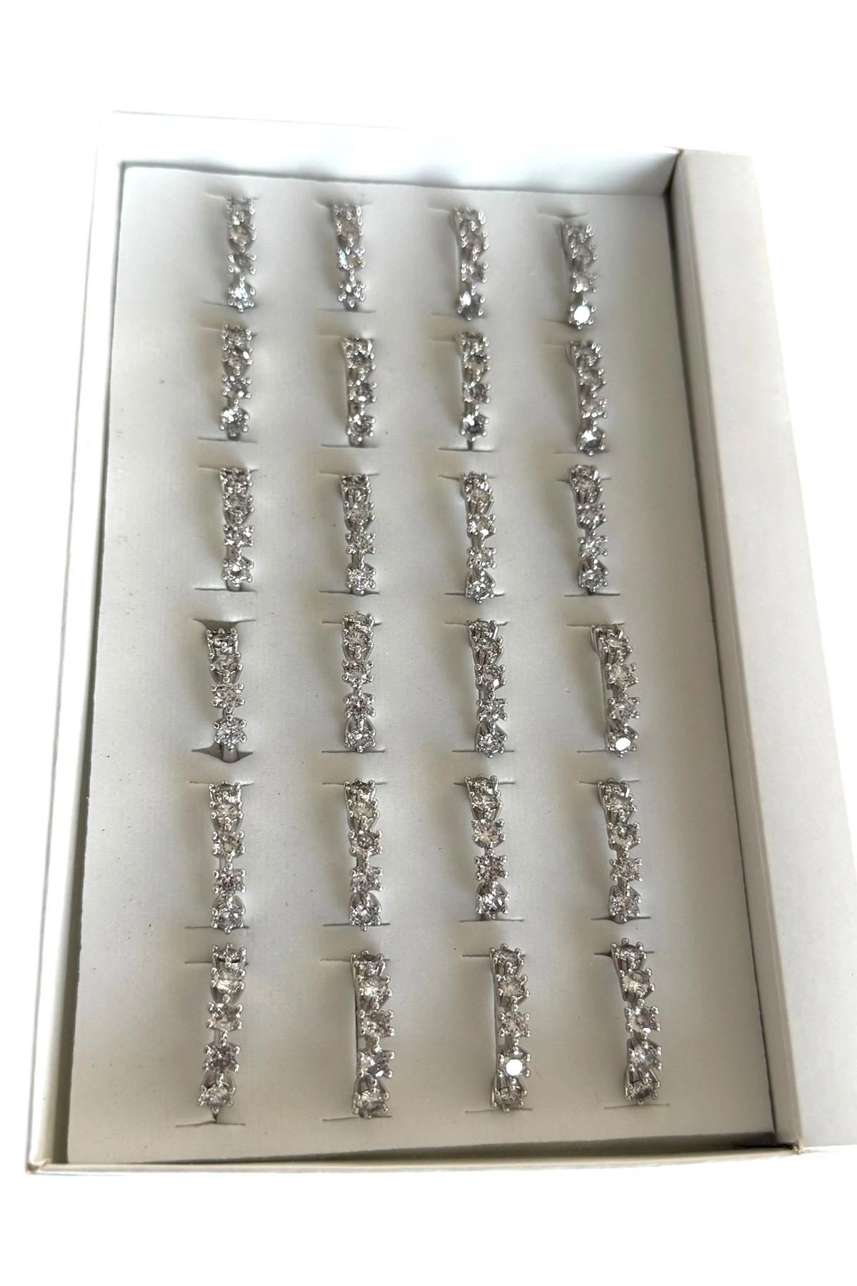 24'lü Gümüş Renk Beştaş Detaylı Yüzük Set