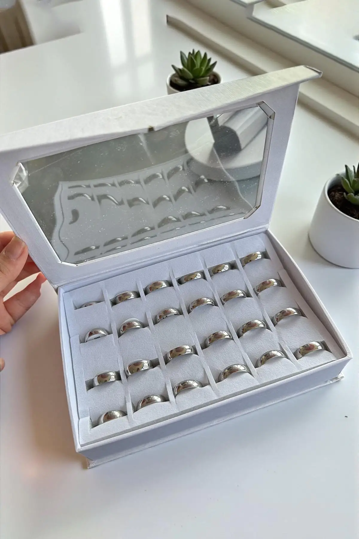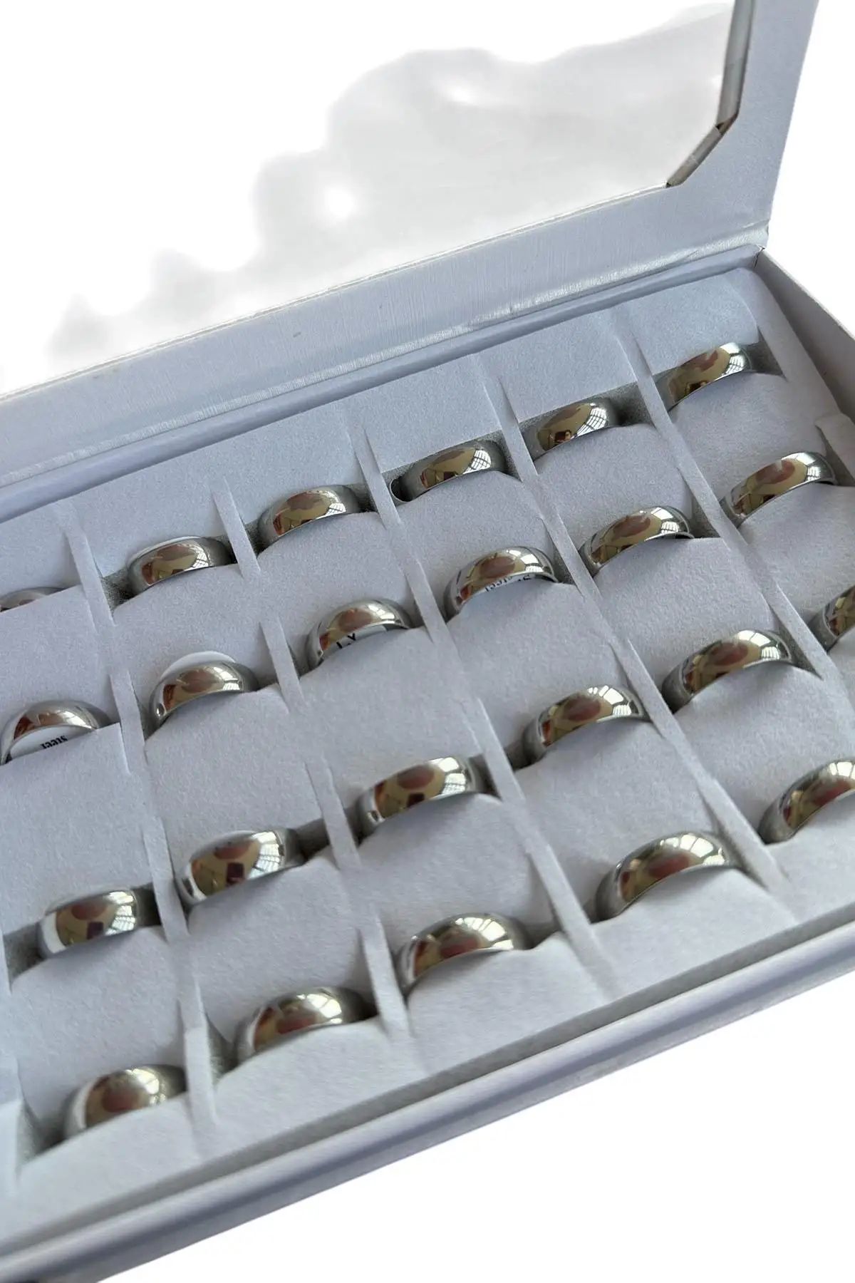 24'lü Gümüş Renk Numaralı Kalın Çelik Alyans Set