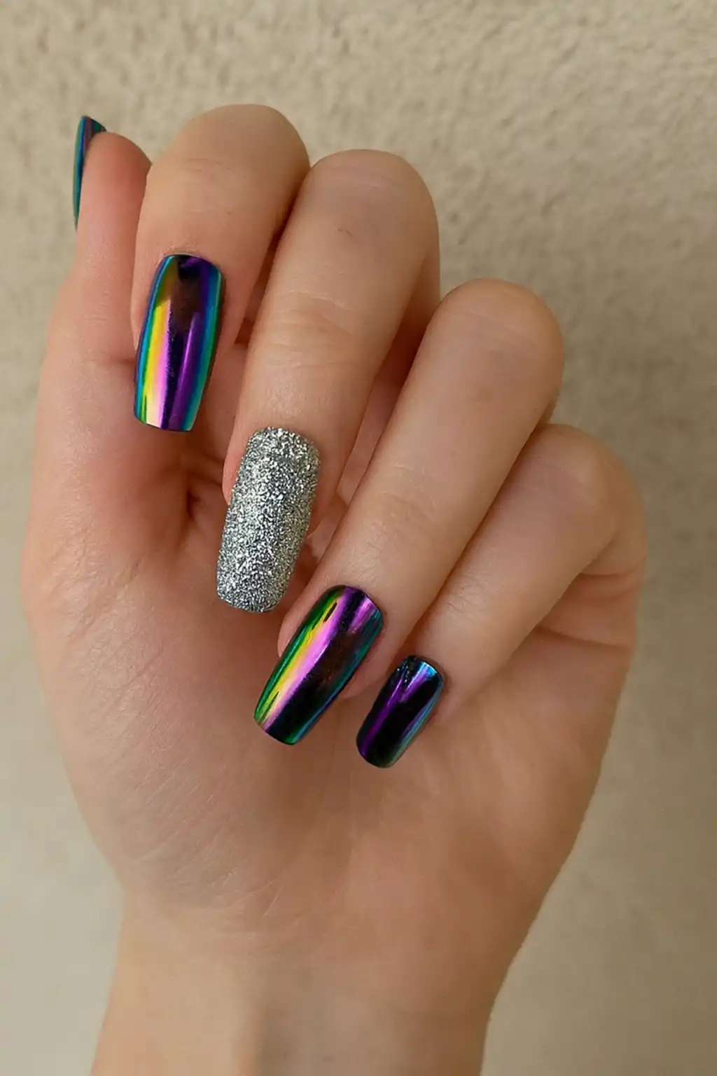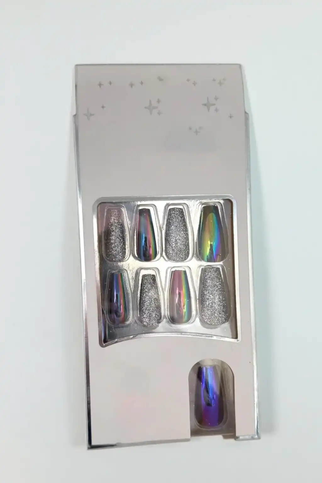 24'lü Gümüş Renk Simli Ve Hologramlı Takma Tırnak (Yapıştırıcılı)