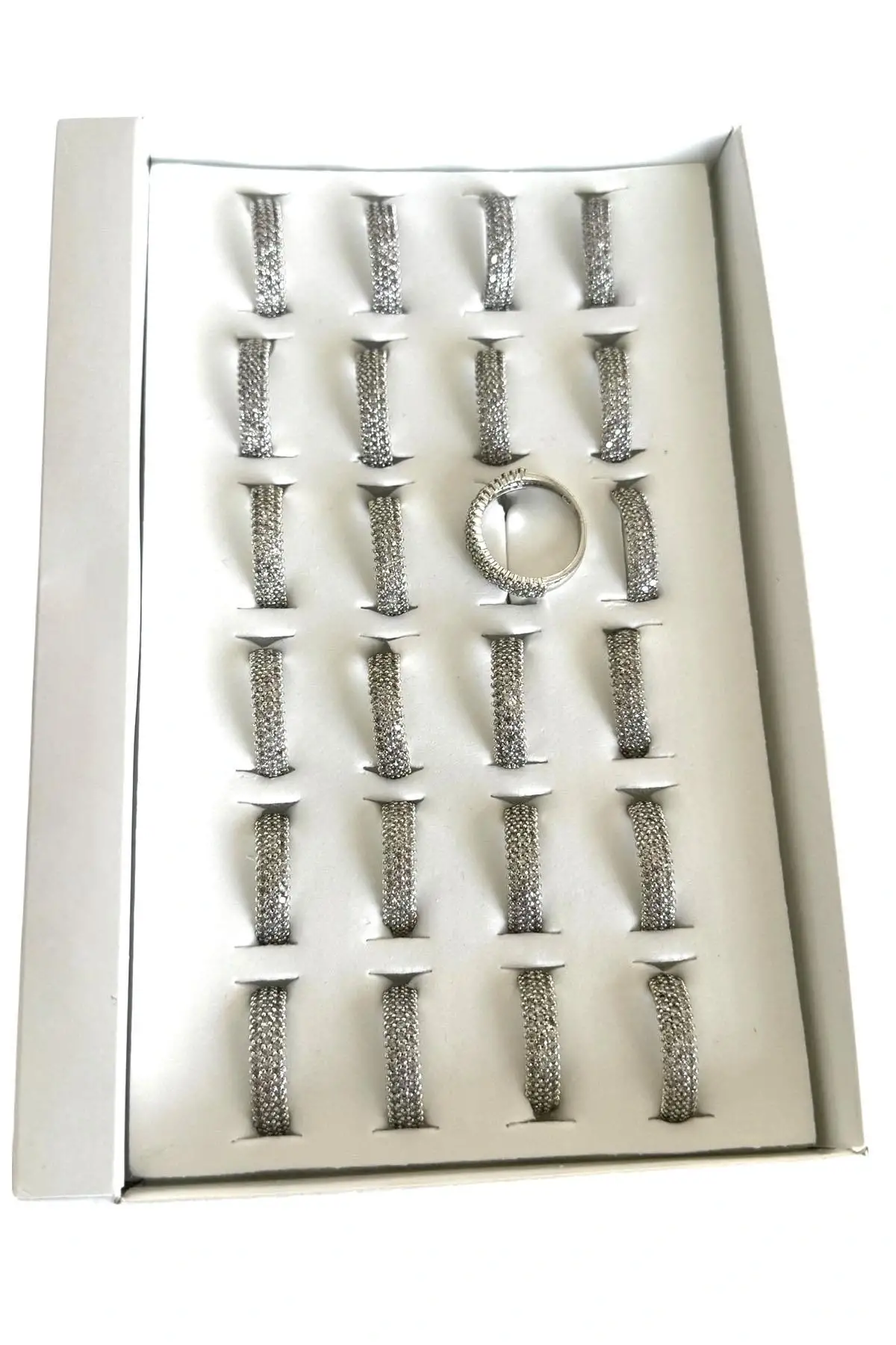 24'lü Gümüş Renk Taş Detaylı Yüzük Set