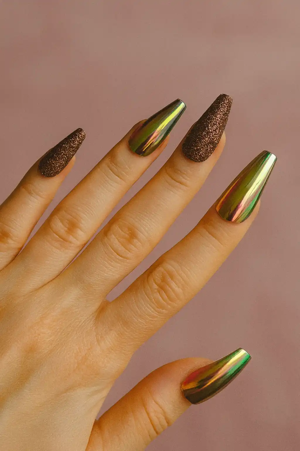 24'lü Kahve Renk Simli Ve Hologramlı Takma Tırnak (Yapıştırıcılı)