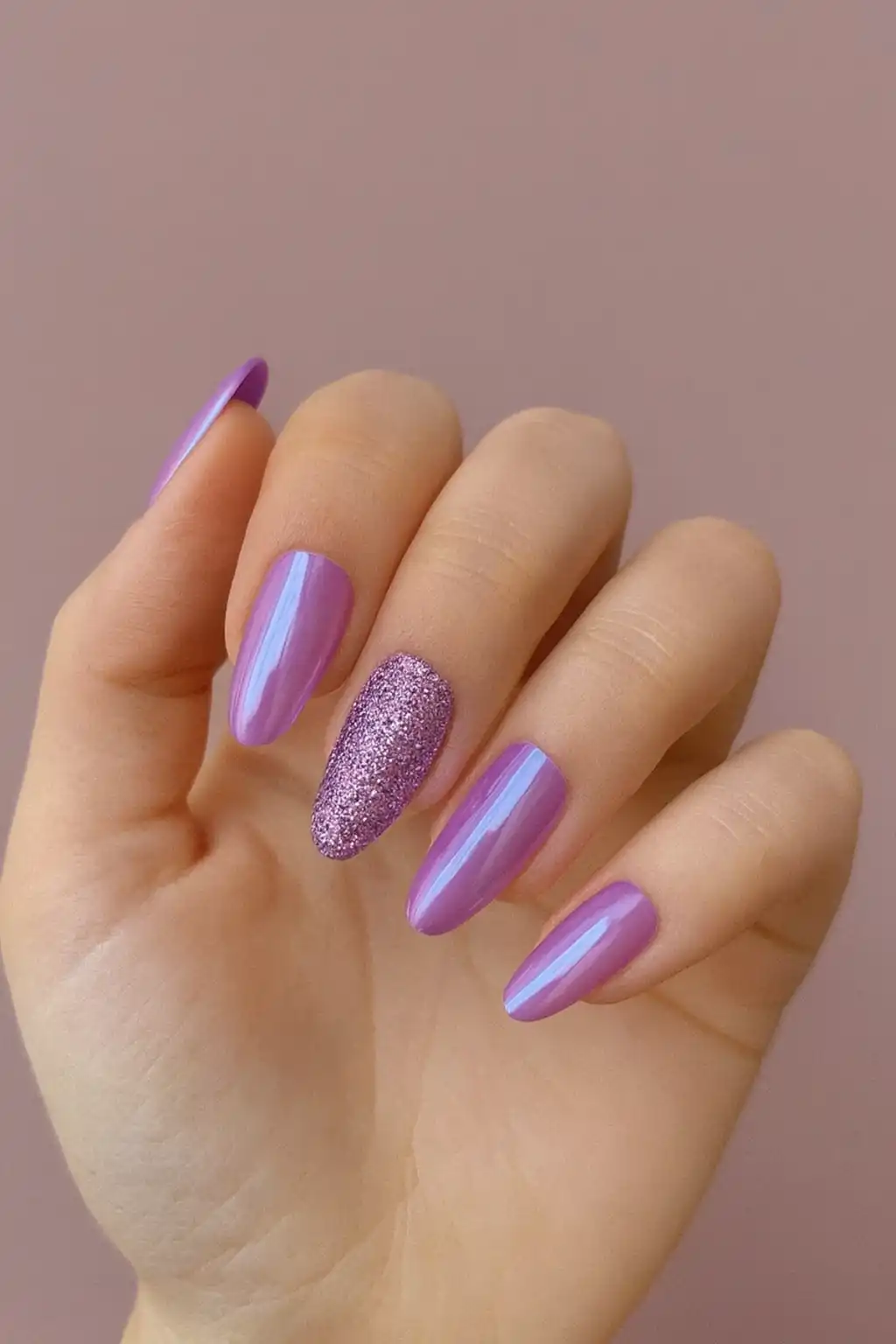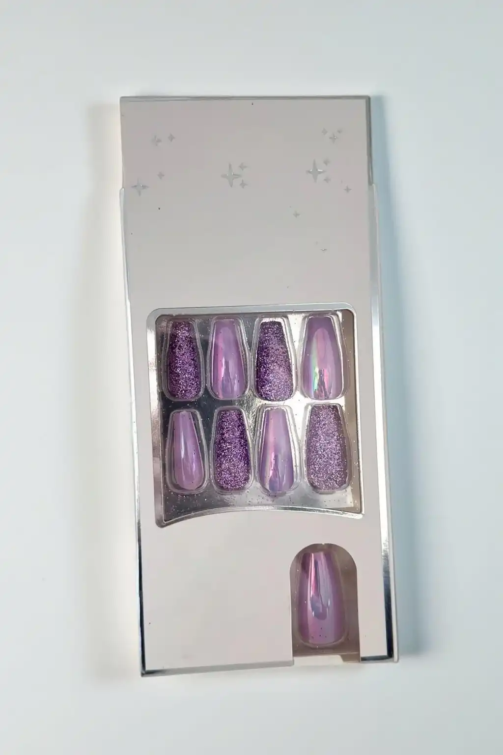 24'lü Lila Renk Simli Ve Hologramlı Takma Tırnak (Yapıştırıcılı)