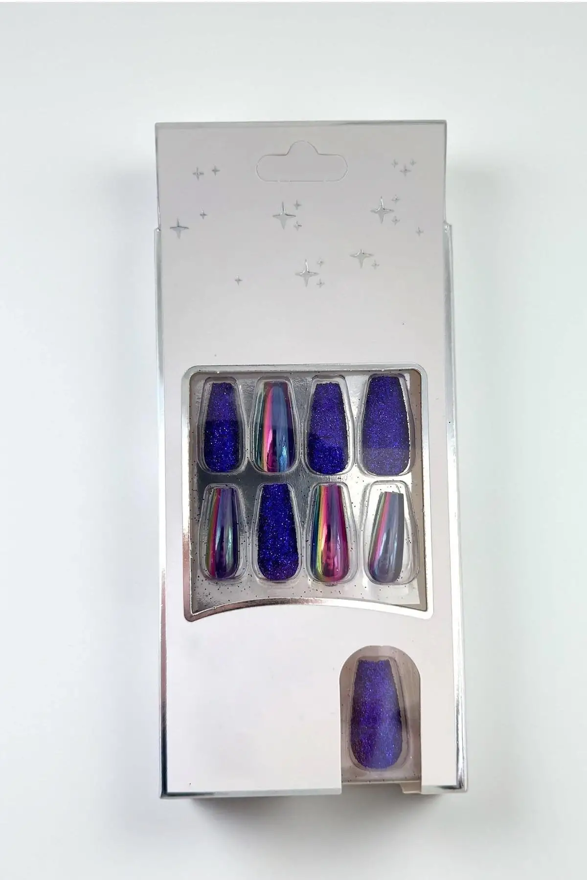 24'lü Mor Renk Simli Ve Hologramlı Takma Tırnak (Yapıştırıcılı)