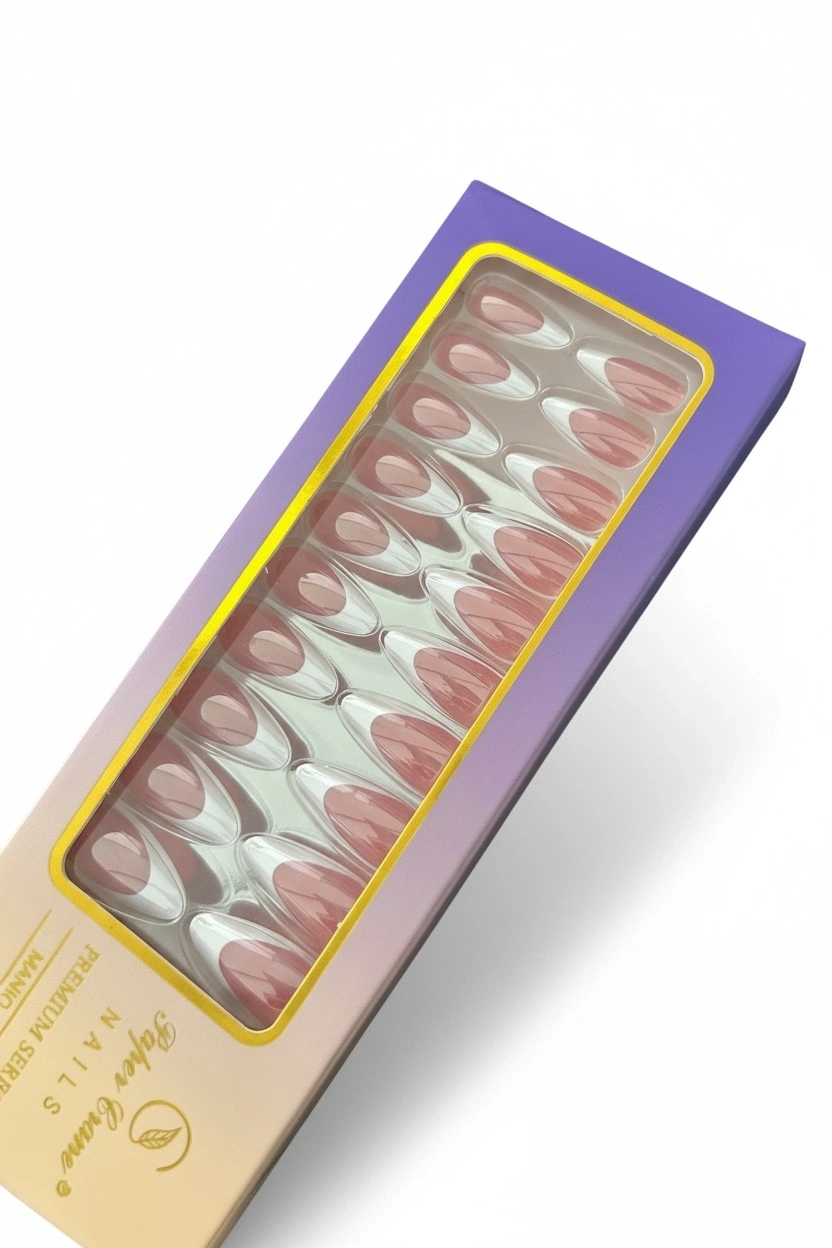 24'lü Pudra Ve Beyaz Renk Jel Görünümlü Takma Tırnak (Yapıştırıcılı)