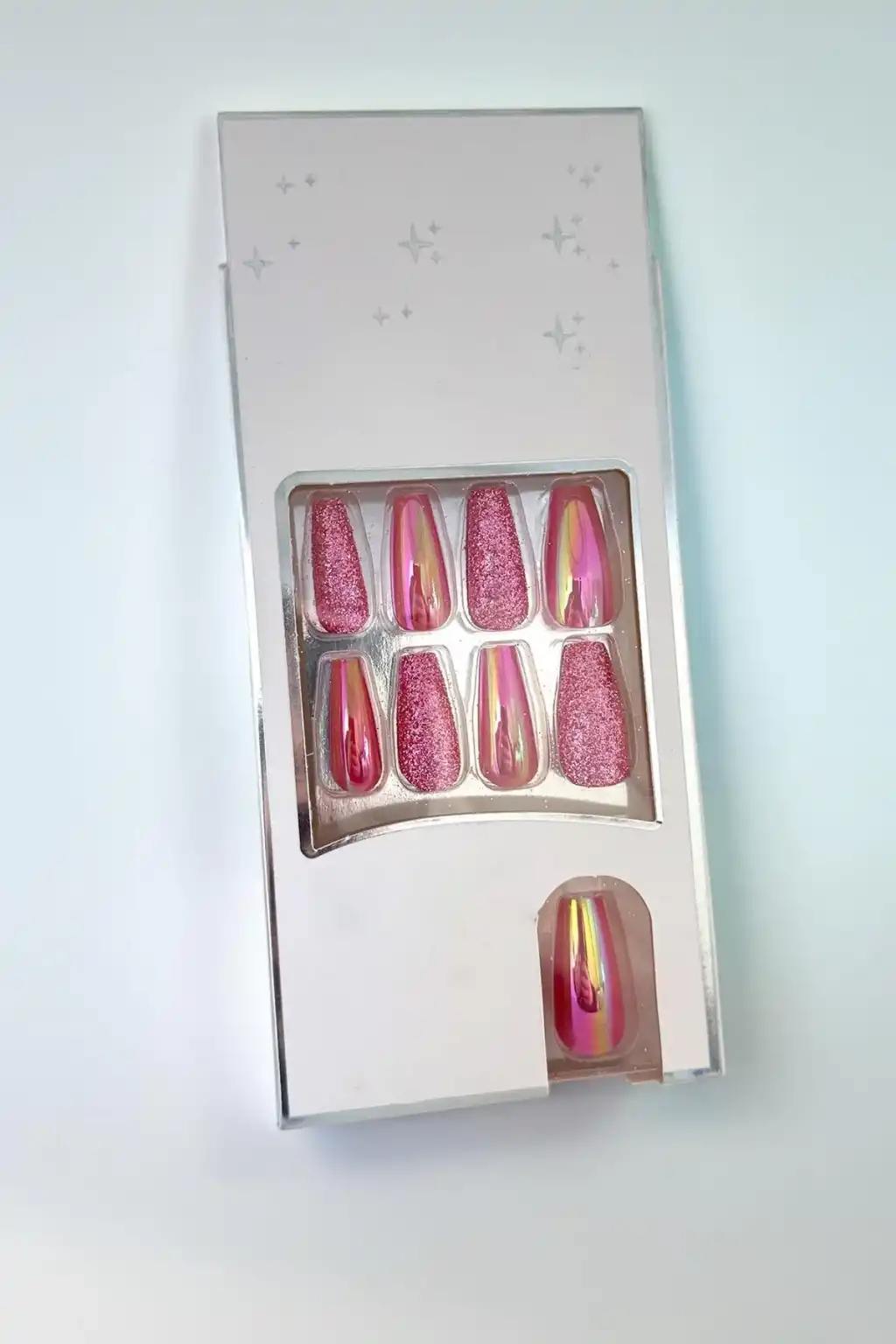 24'lü Pembe Renk Simli Ve Hologramlı Takma Tırnak (Yapıştırıcılı)
