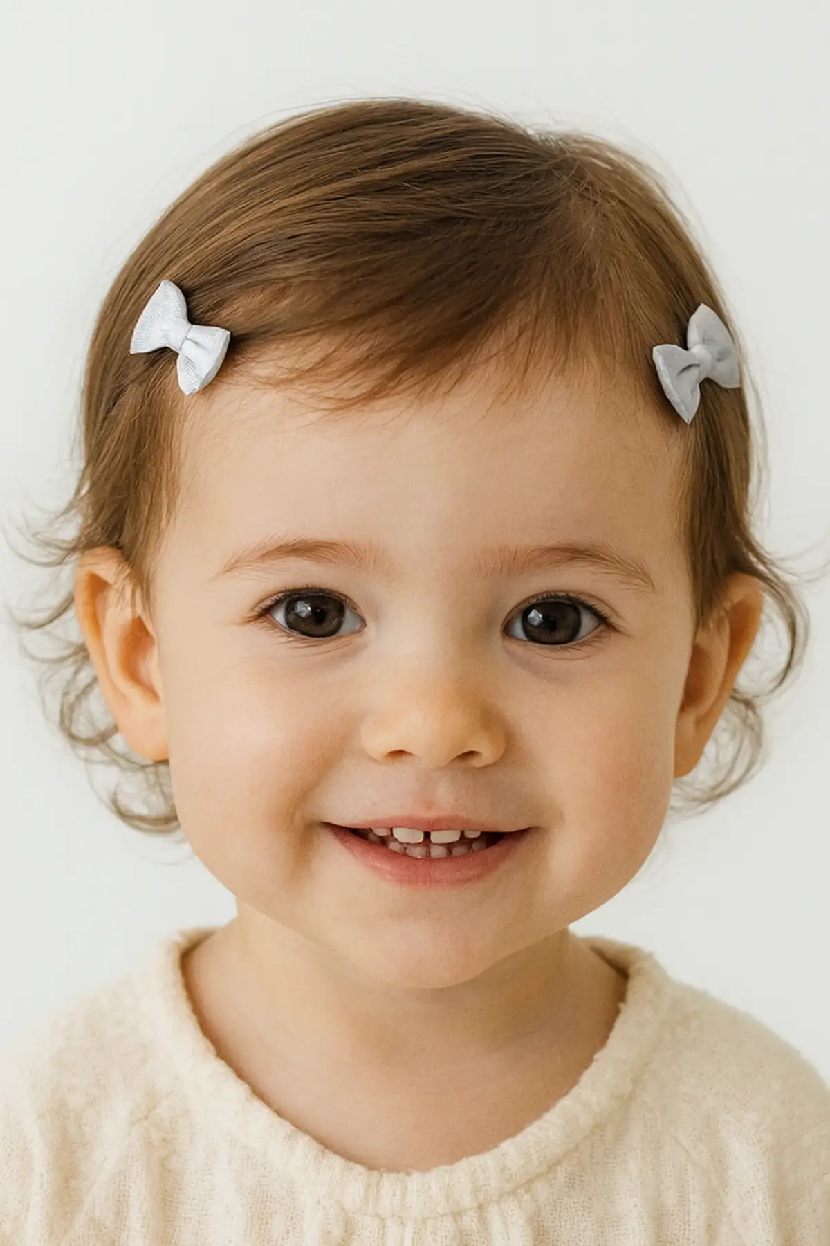 2'li Beyaz Renk Kurdele Figürlü Saçsız Bebek Tokası