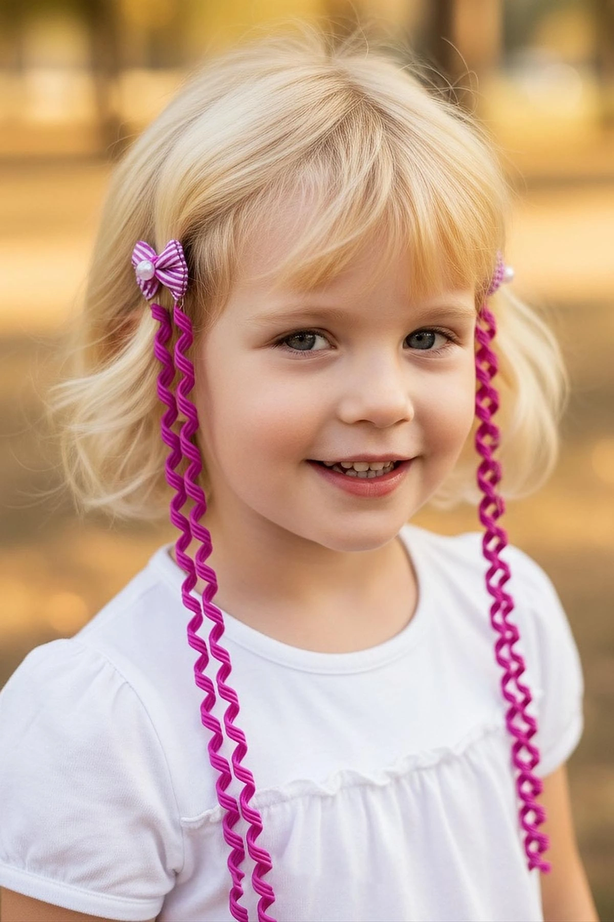 2'li Fuşya Renk Kurdele Figürlü Çocuk Yan Toka