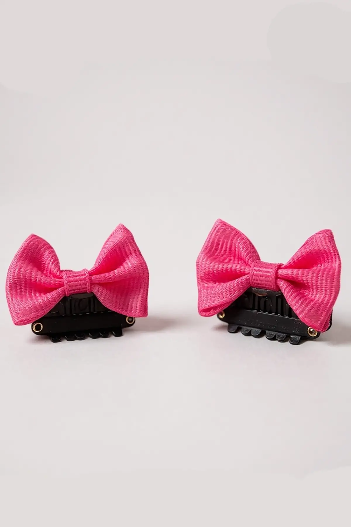 2'li Fuşya Renk Kurdele Figürlü Saçsız Bebek Tokası