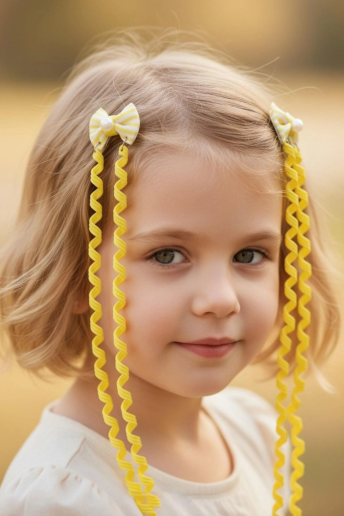 2'li Sarı Renk Kurdele Figürlü Çocuk Yan Toka