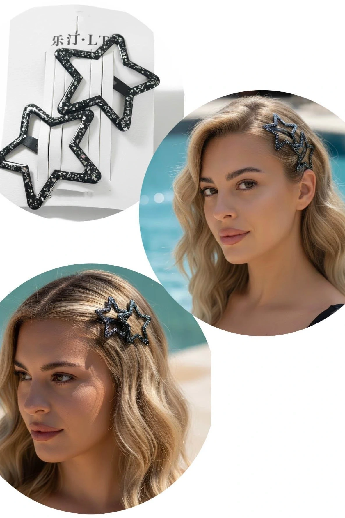 2'li Siyah Renk Yıldız Figürlü Yan Toka