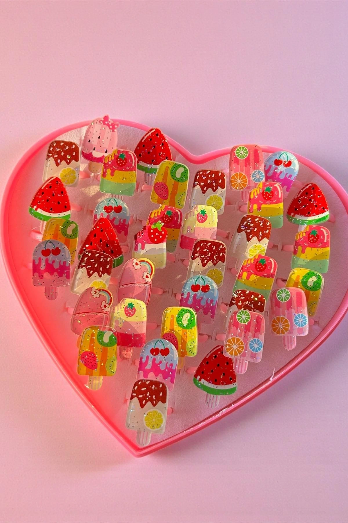 36'lı Karışık Renk Dondurma Figürlü Çocuk Yüzük Set