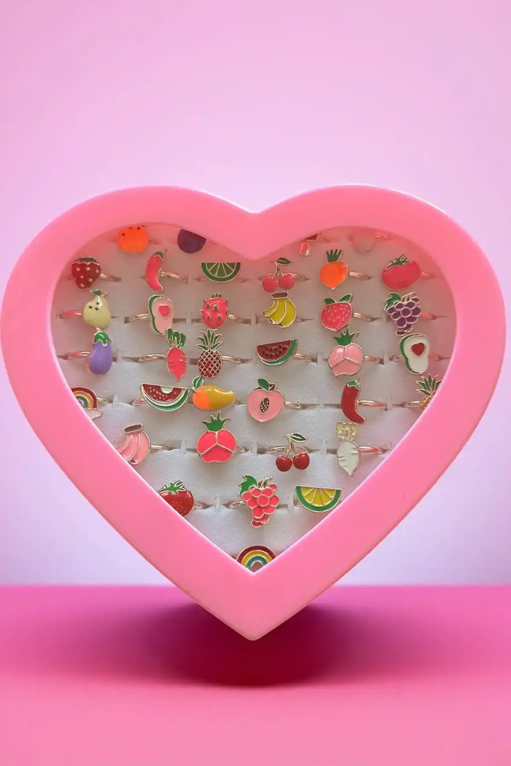 36'lı Karışık Renk Meyve Figürlü Çocuk Yüzük Set