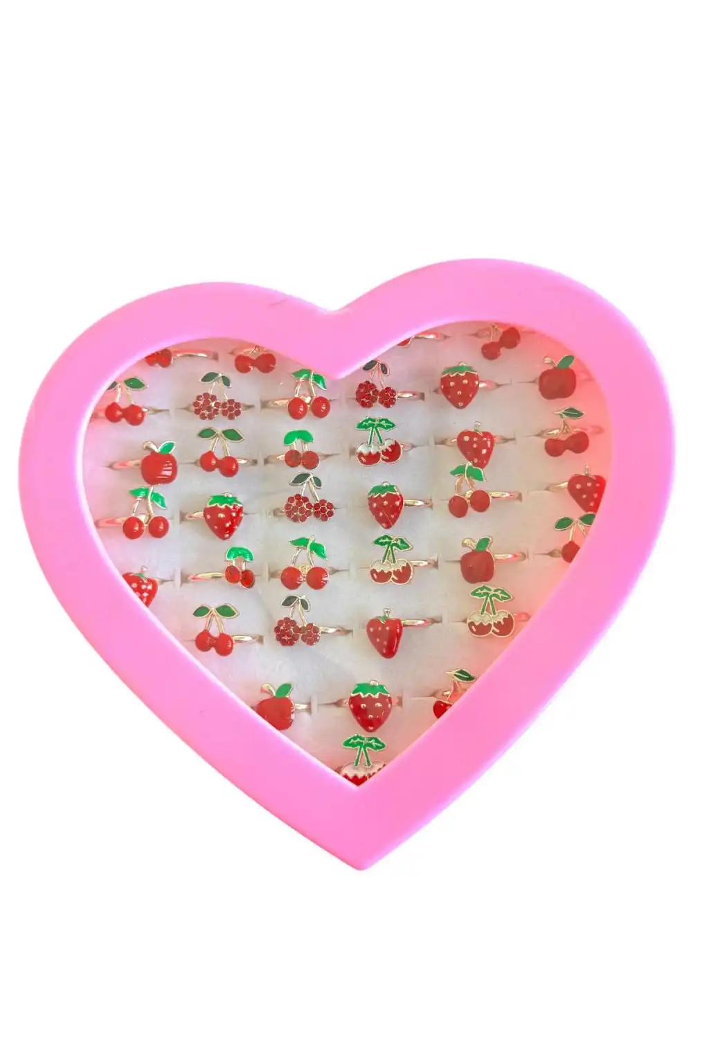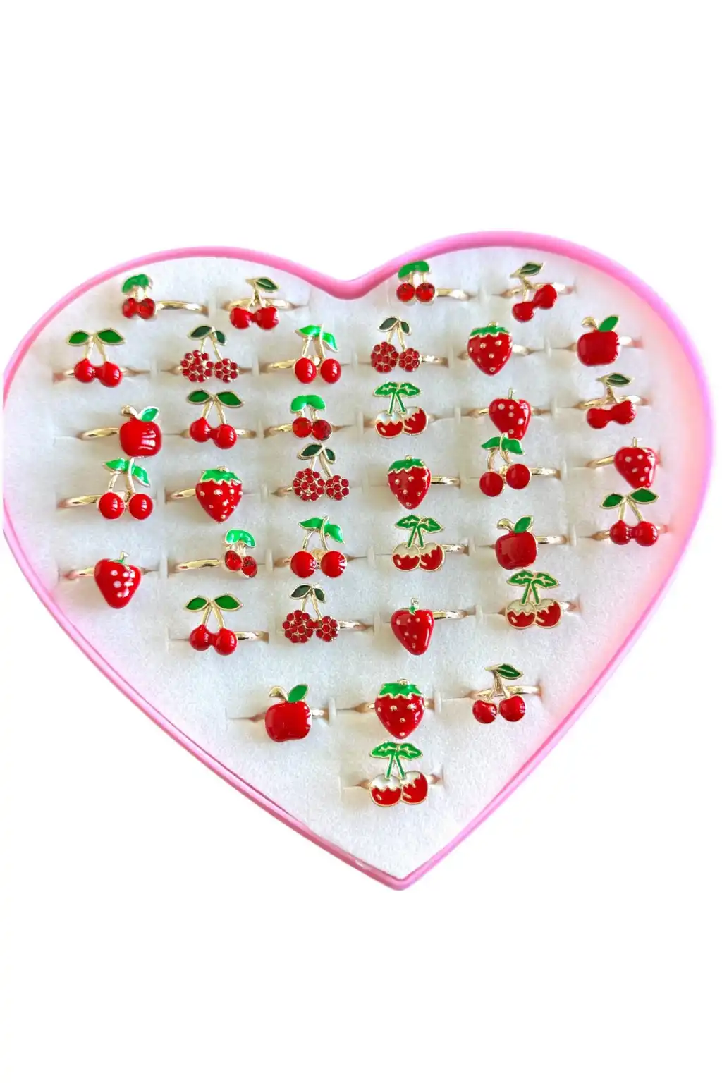 36'lı Karışık Renk Meyve Figürlü Çocuk Yüzük Set