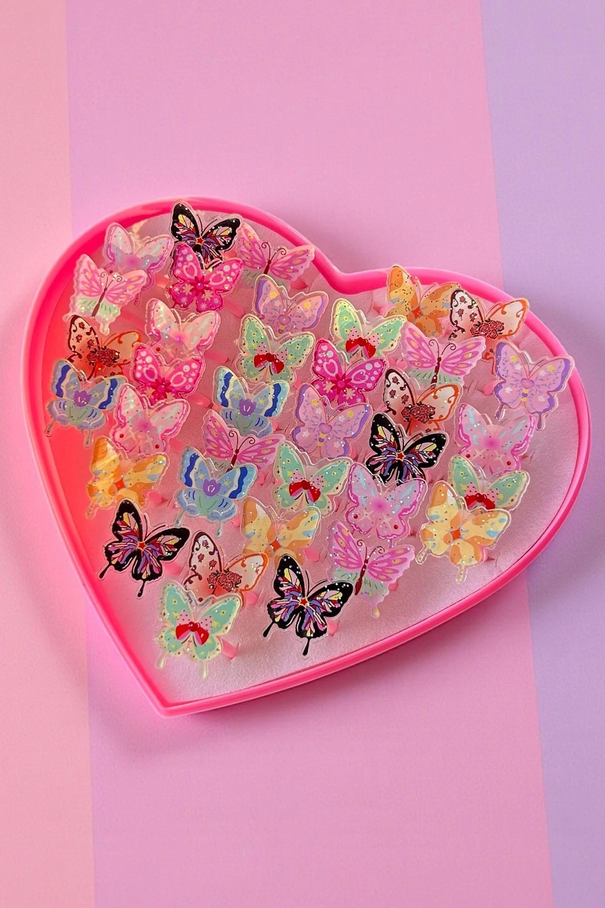 36'lı Karışık Renk Kelebek Figürlü Çocuk Yüzük Set