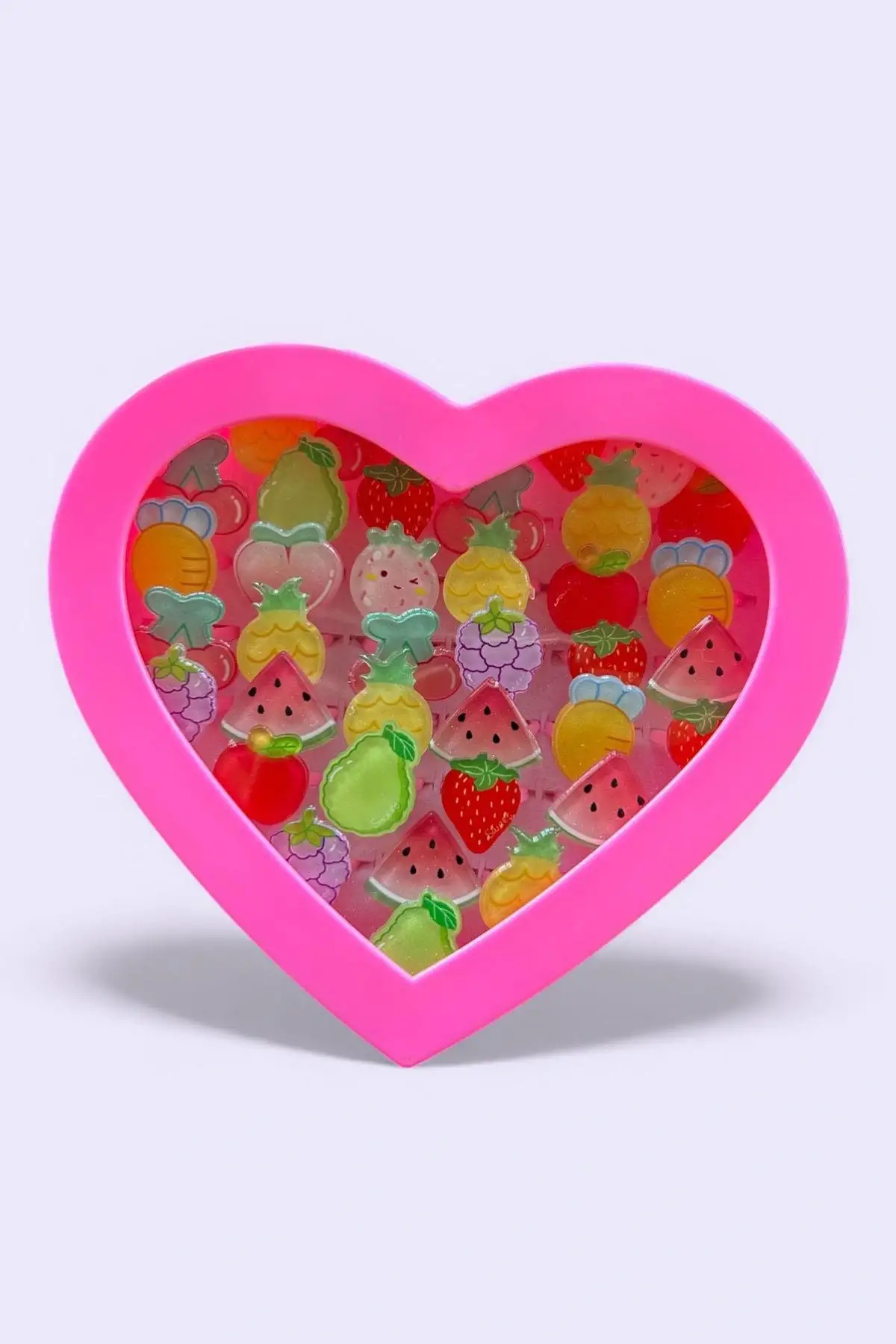 36'lı Karışık Renk Meyve Figürlü Çocuk Yüzük Set