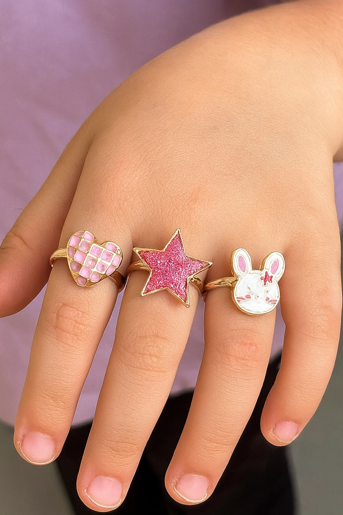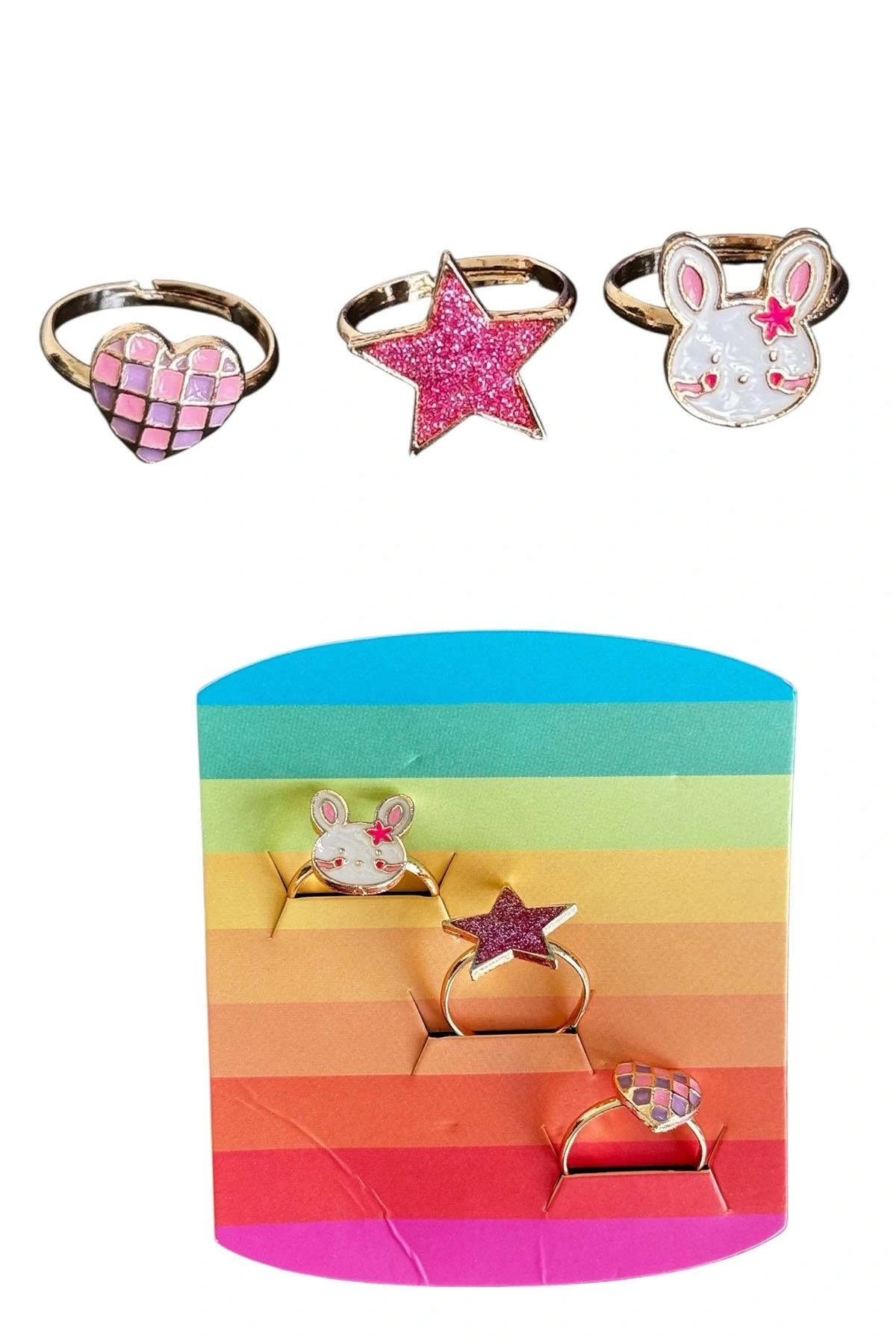 3'lü Karışık Figürlü Çocuk Yüzük Set