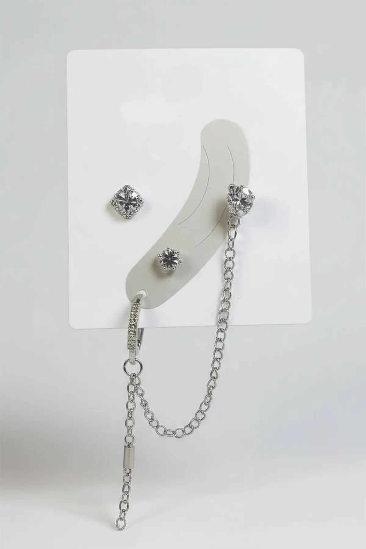 Gümüş Renk Taş Detaylı 6'lı Küpe Set