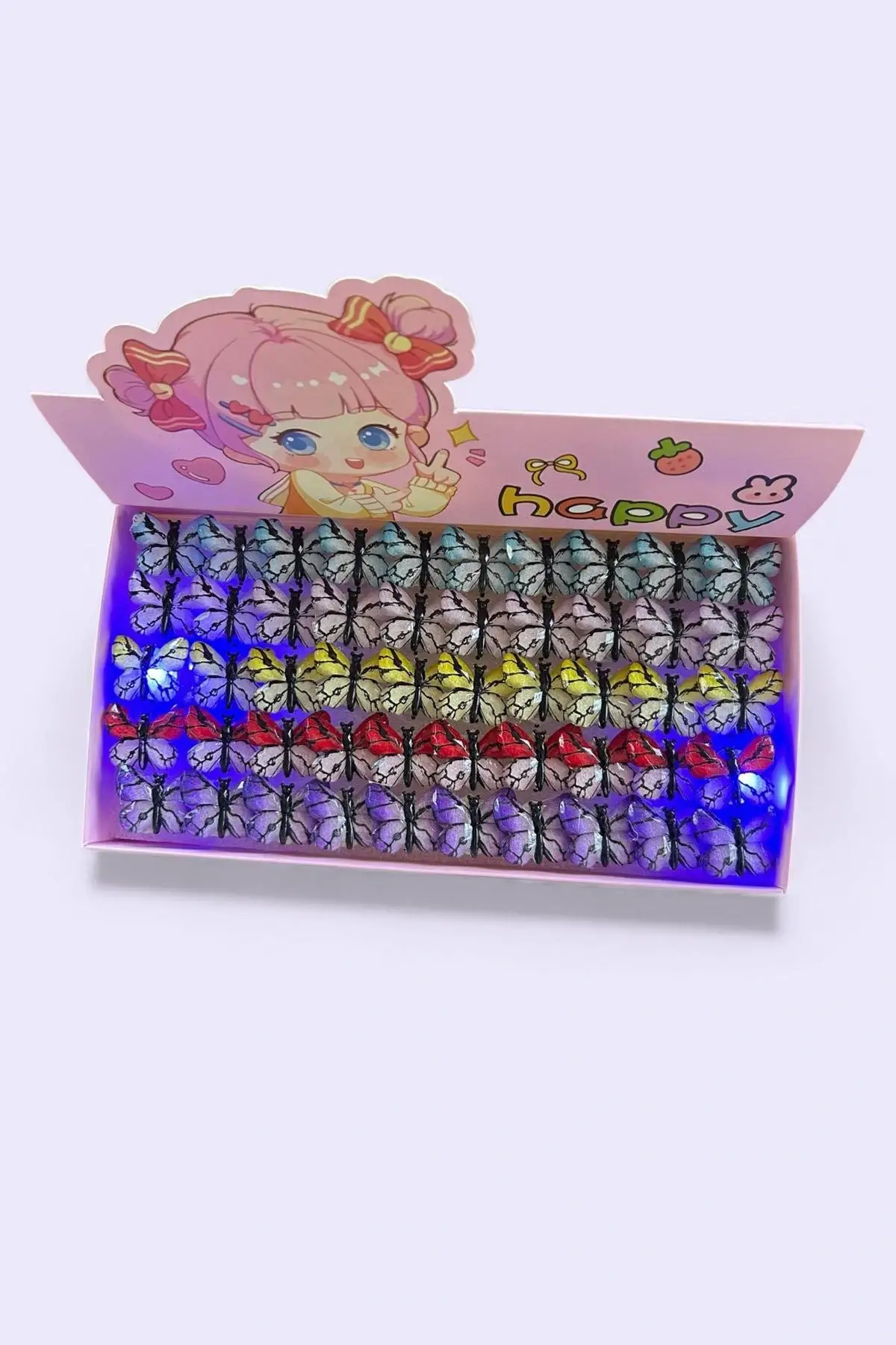 50 Adet Kelebek Figürlü Işıklı Yüzük Set