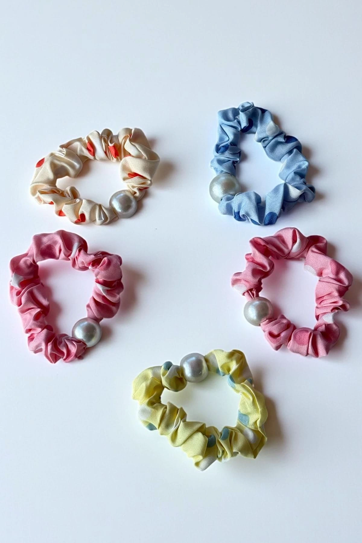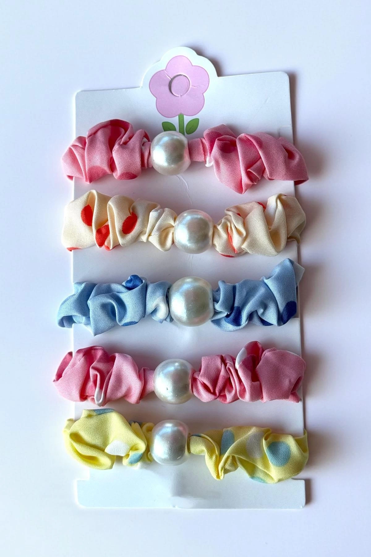5'li Karışık Renk İnci Detaylı Lastik Toka Set