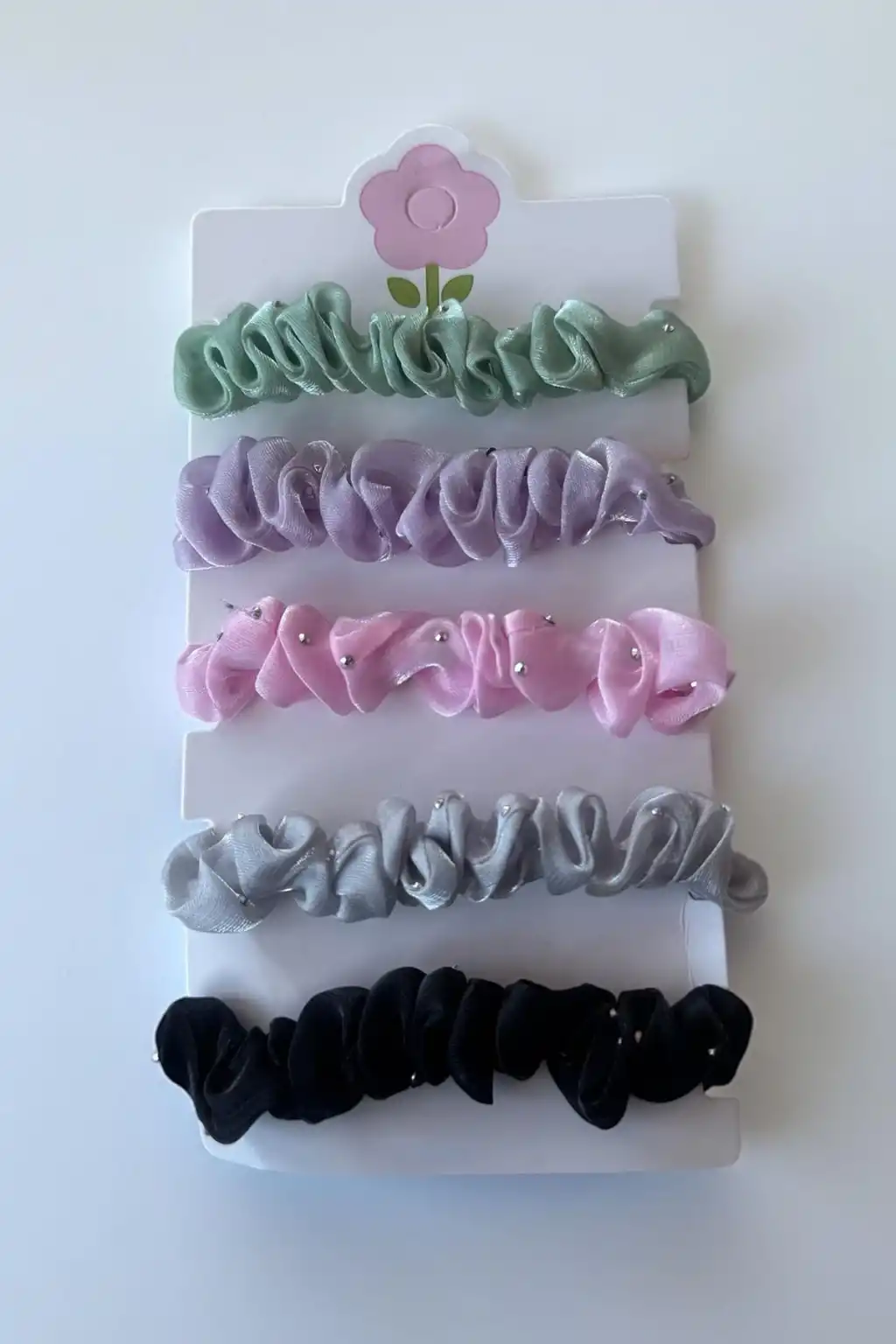 5'li Karışık Renk Taş Detaylı Lastik Toka Set