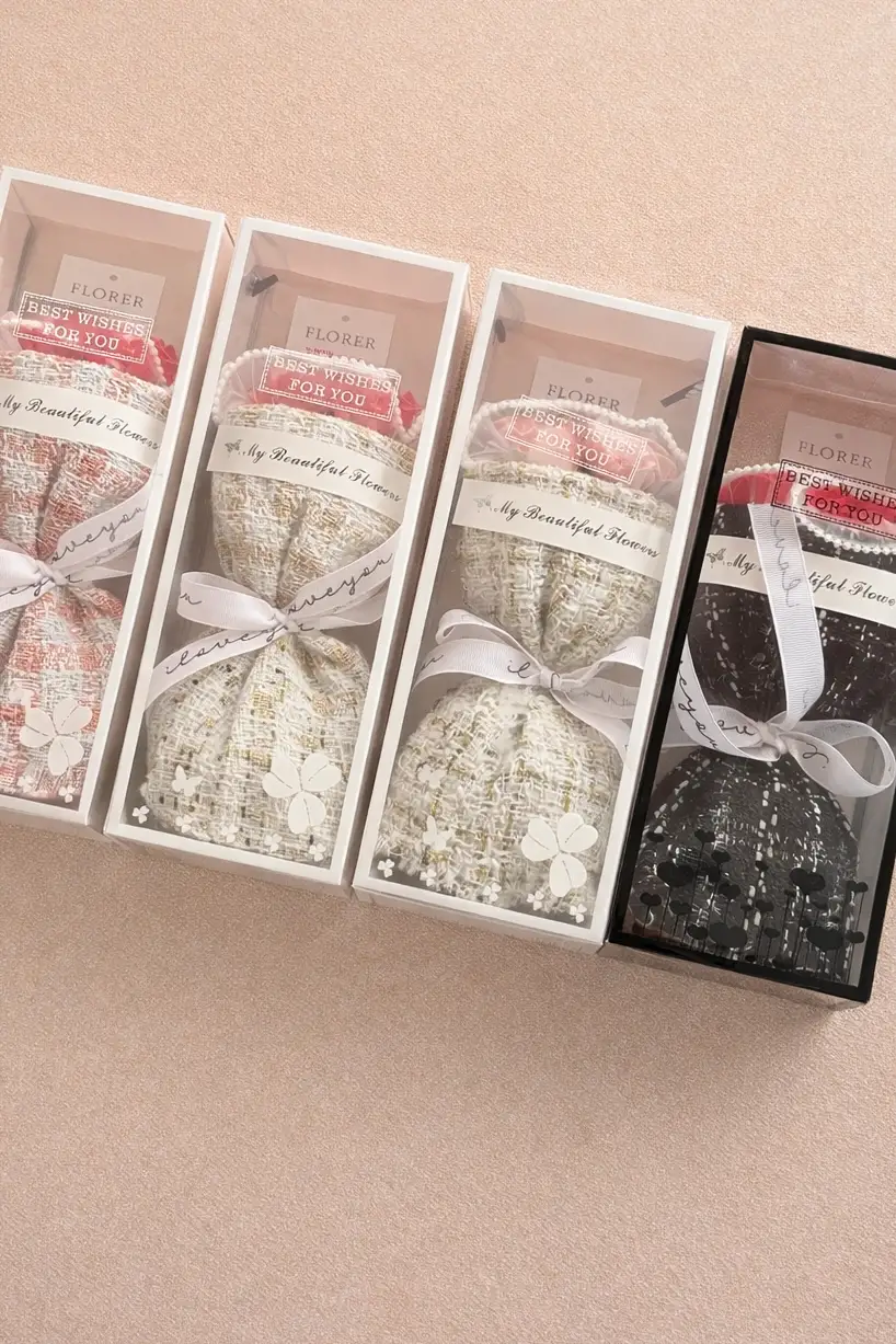 Zarif detayları ve hoş kokularıyla öne çıkan dekoratif kokulu sabun kese seti, hem göz alıcı bir dekor ürünü hem de kullanışlı bir hediye alternatifi sunar. Şık kutusu içerisinde farklı renk ve desenlere sahip sabun keseleri yer alır. Kurdele ve etiket detaylarıyla özel günler için hazır bir hediye görünümündedir.