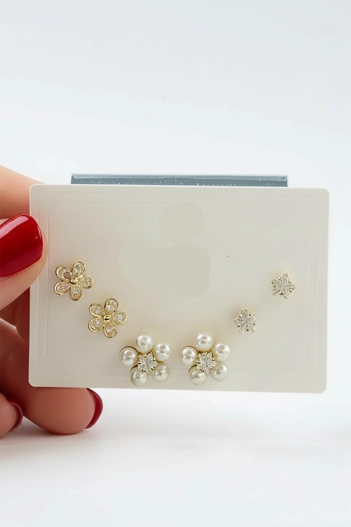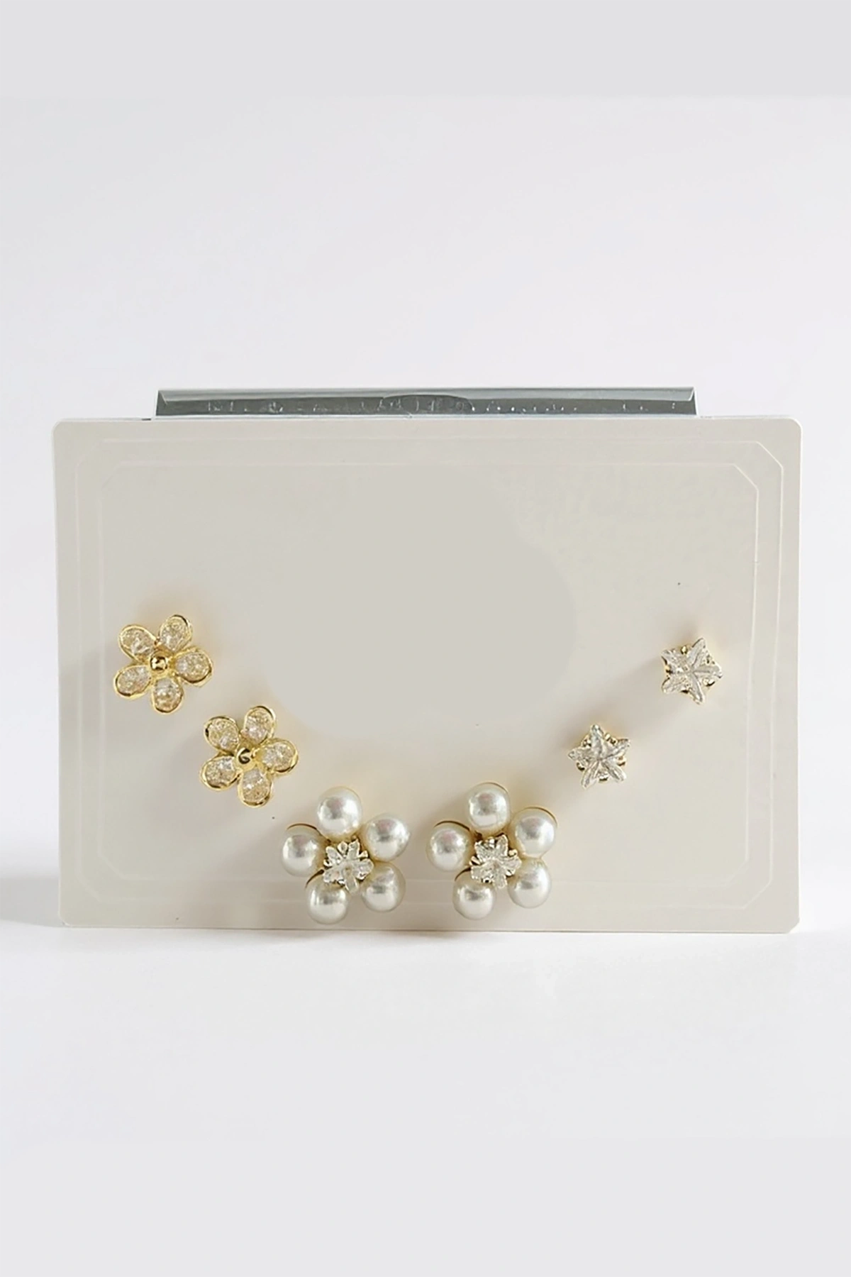 6'lı Altın Renk Çiçek Figürlü Taş Detaylı Küpe Set