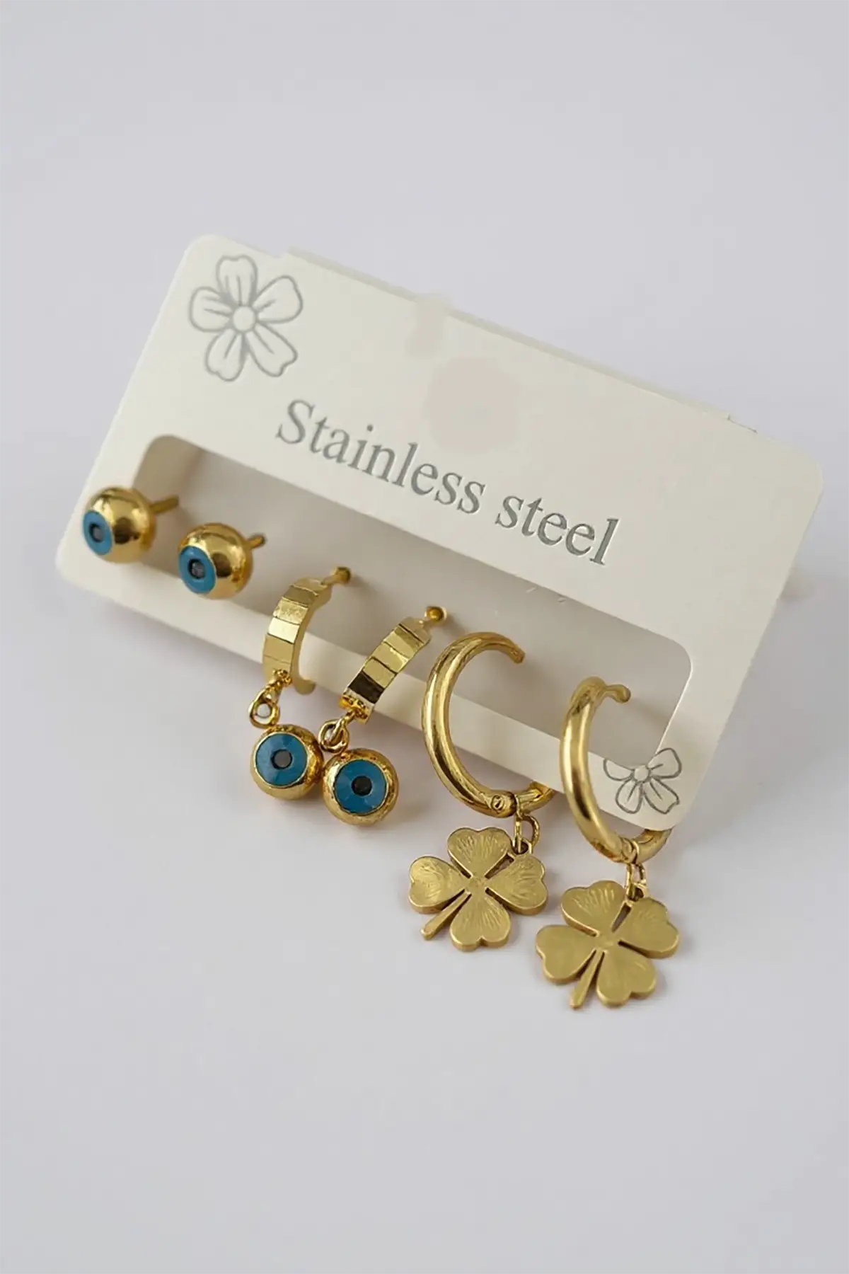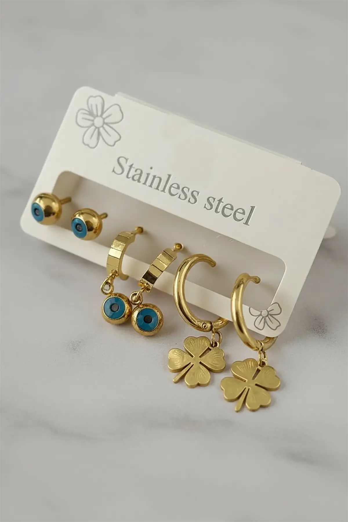 6'lı Altın Renk Karışık Figürlü Çelik Halka Küpe Set