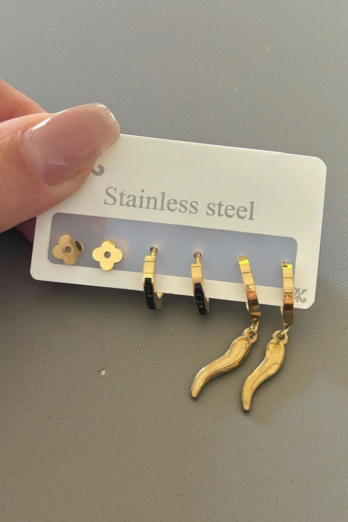 6'lı Altın Renk Karışık Figürlü Çelik Küpe Set