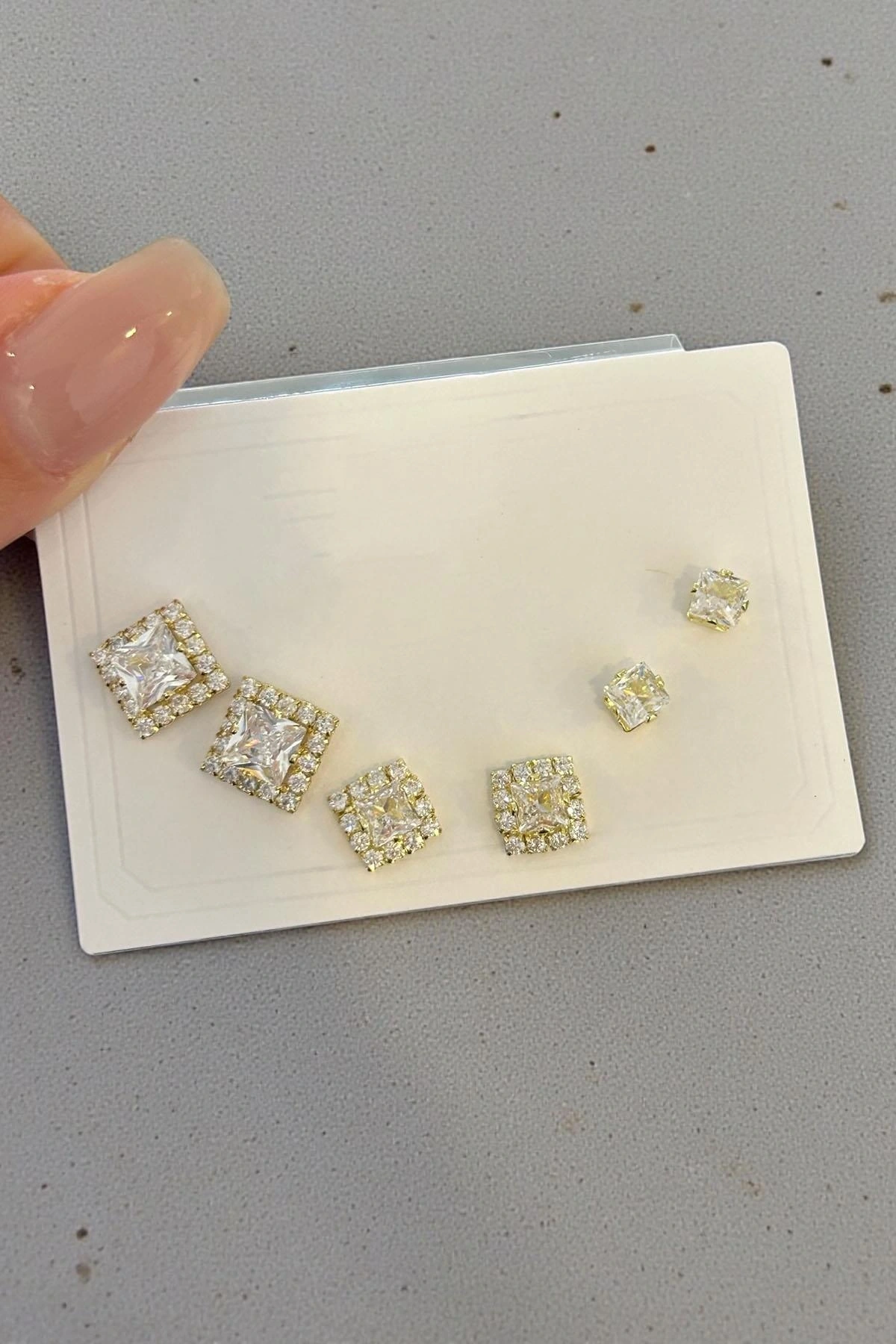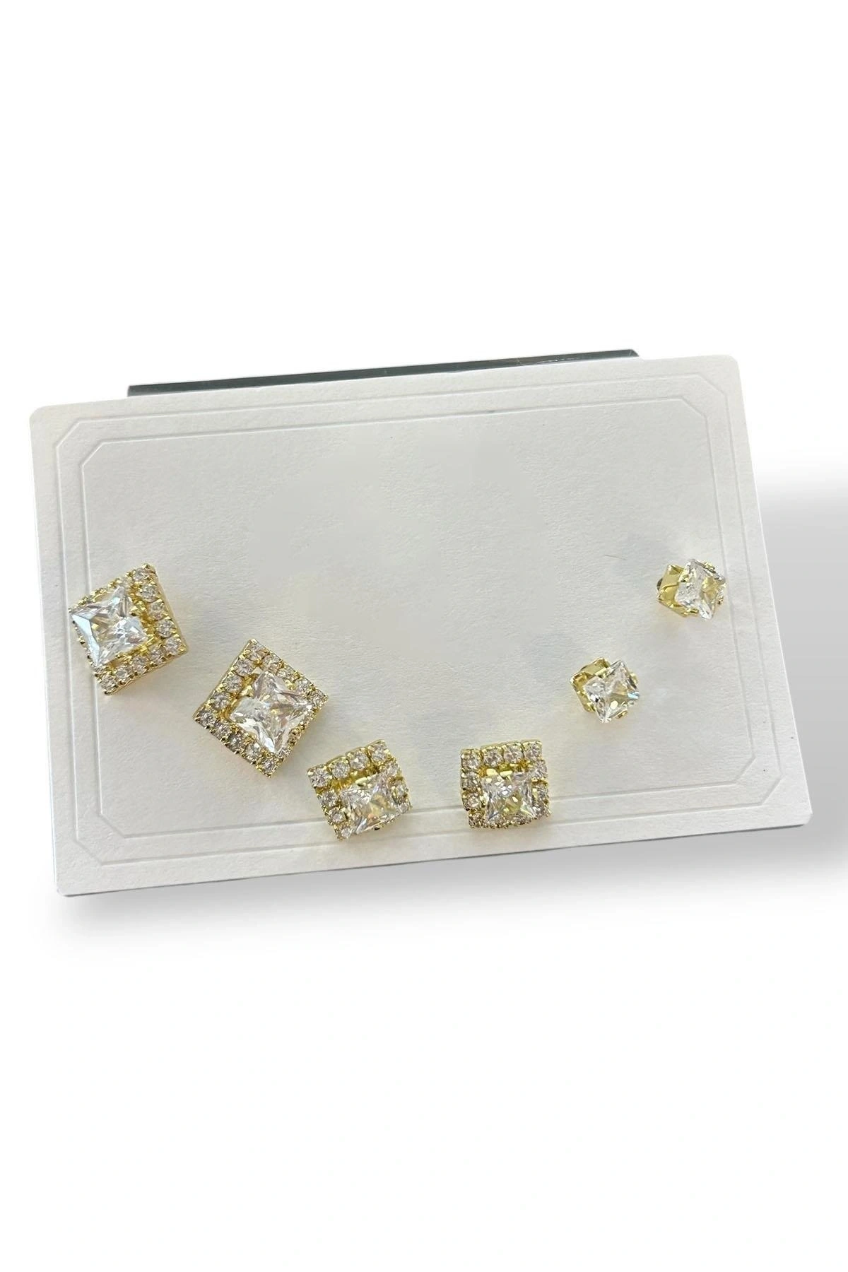 6'lı Altın Renk Taş Detaylı 14k Altın Kaplama Küpe Set