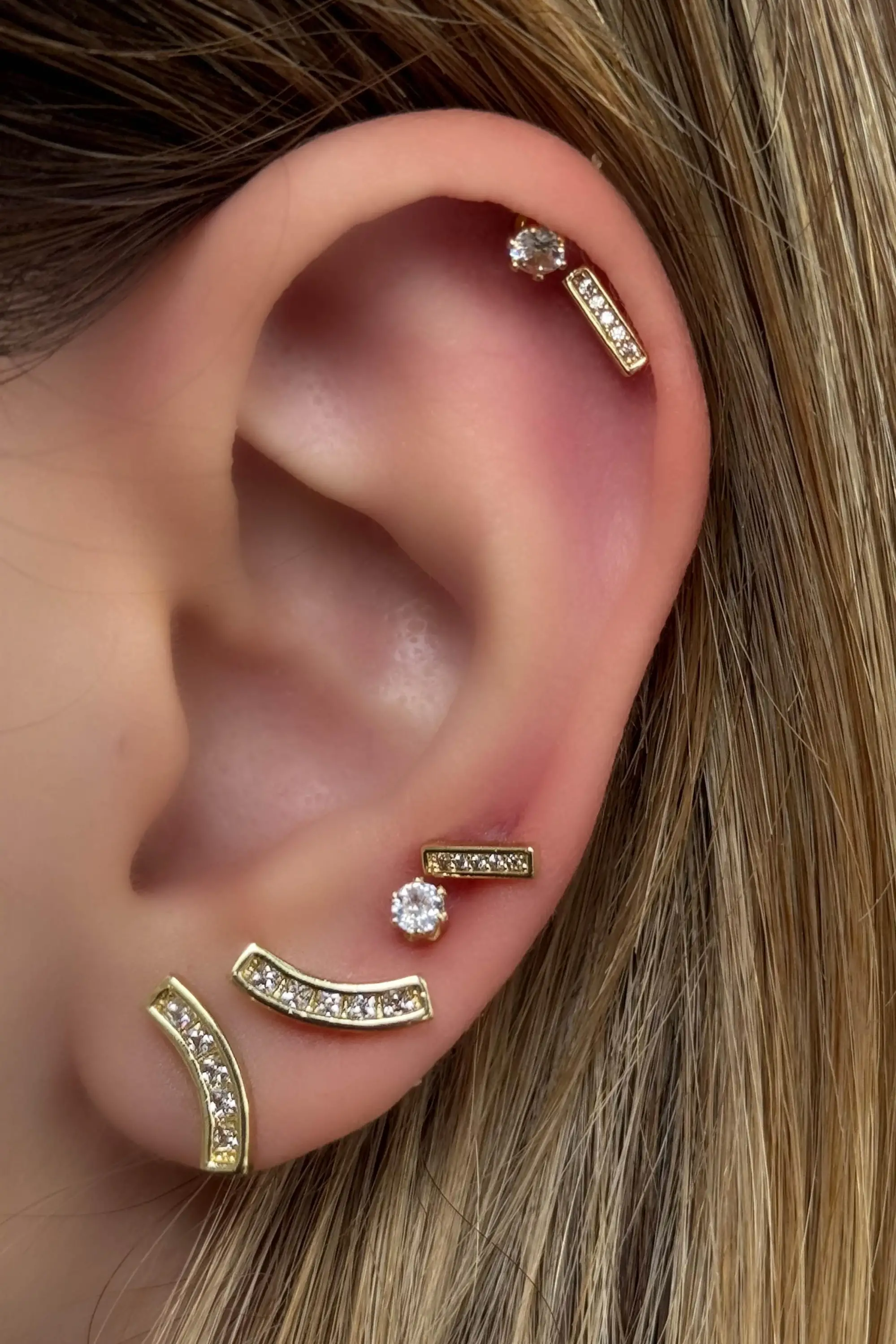 6'lı Altın Renk Taş Detaylı Küpe Set