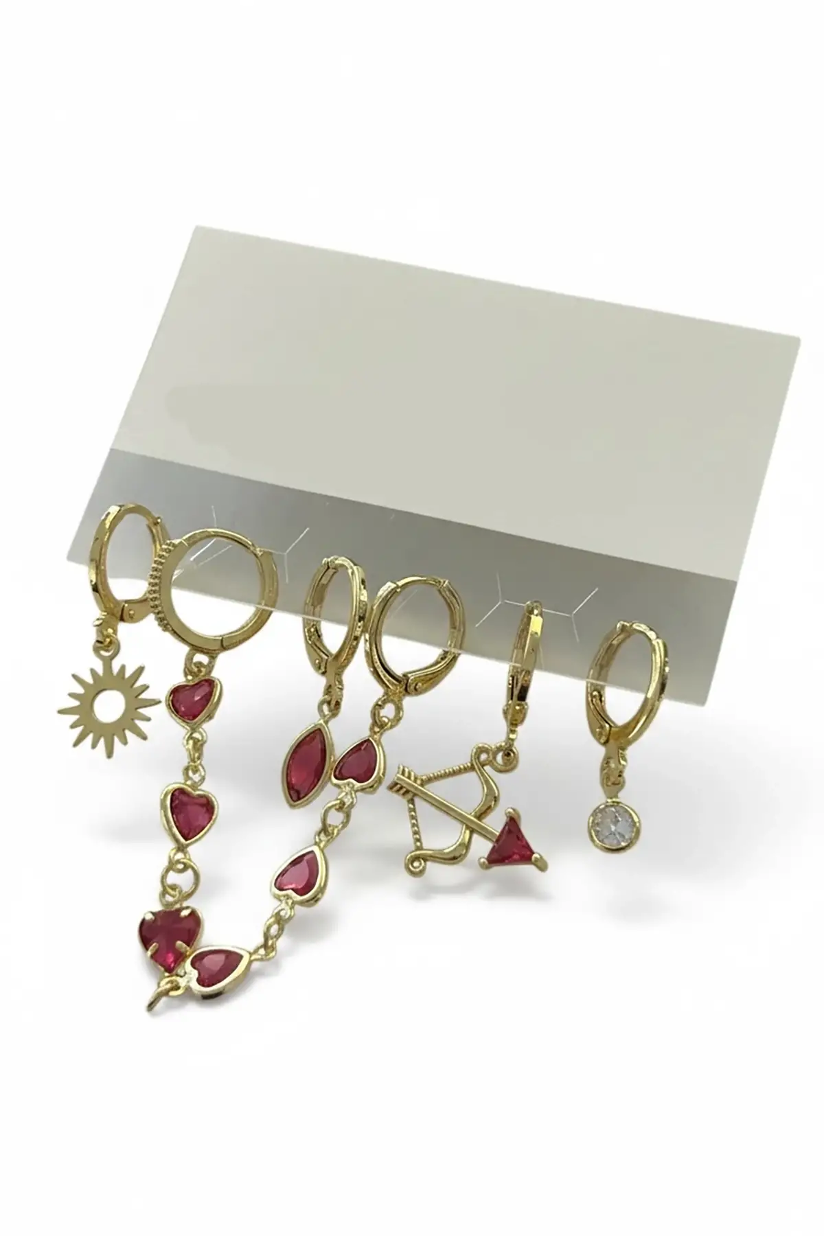6'lı Altın Renk Kurdele Figürlü Taş Detaylı Küpe Set