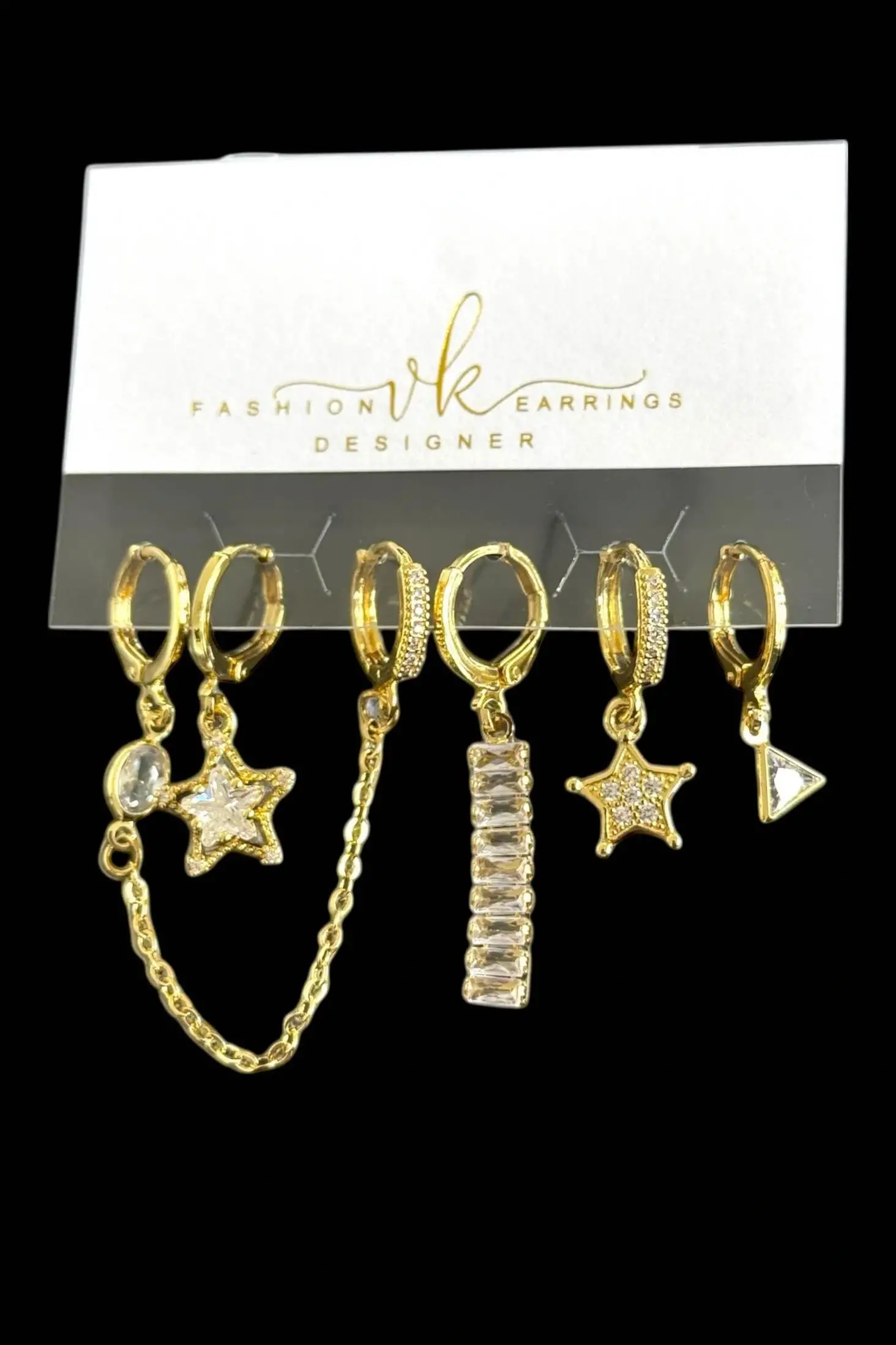 6'lı Altın Renk Yıldız Figürlü Küpe Set