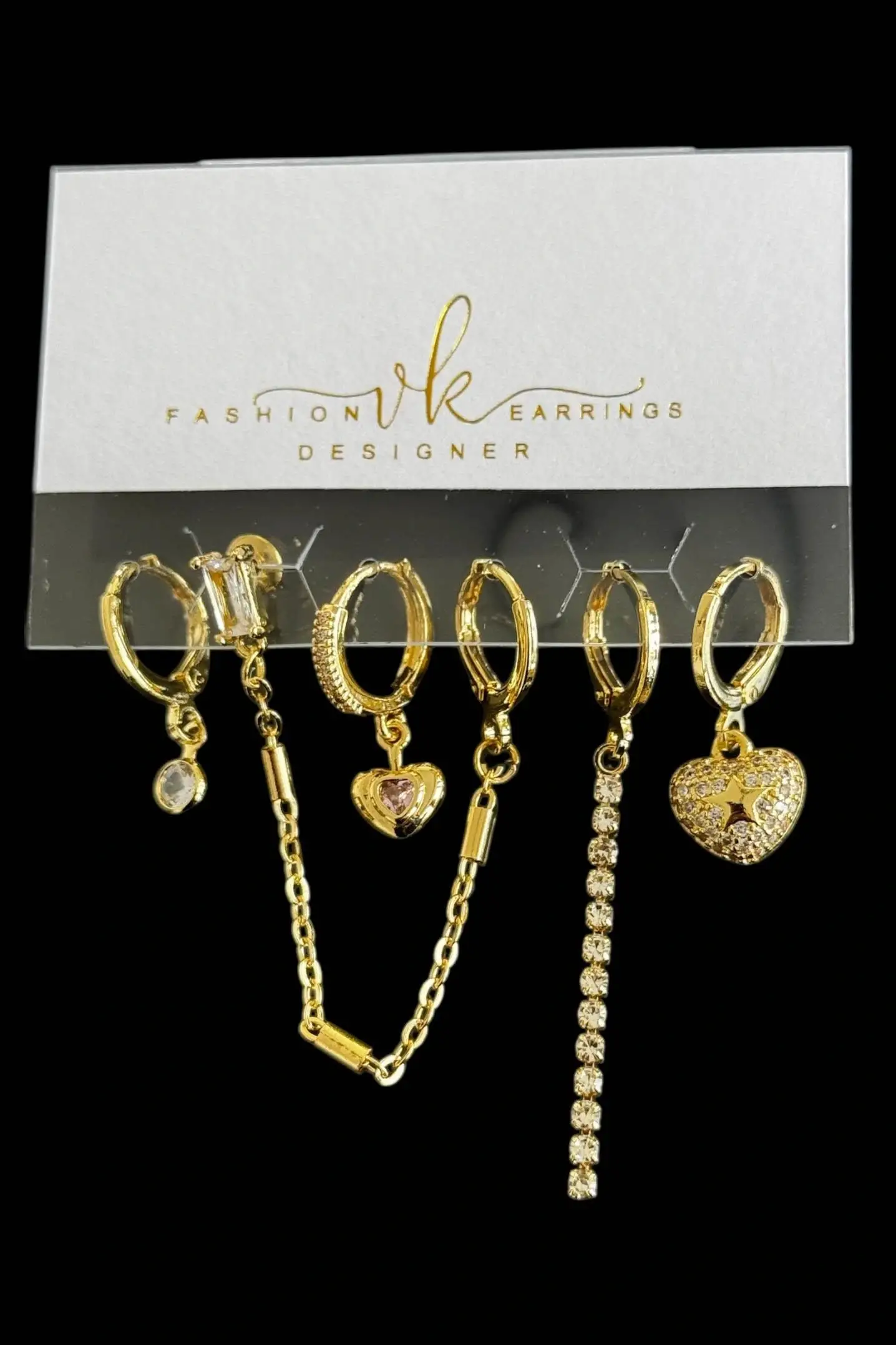 6'lı Altın Renk Taş Detaylı Küpe Set