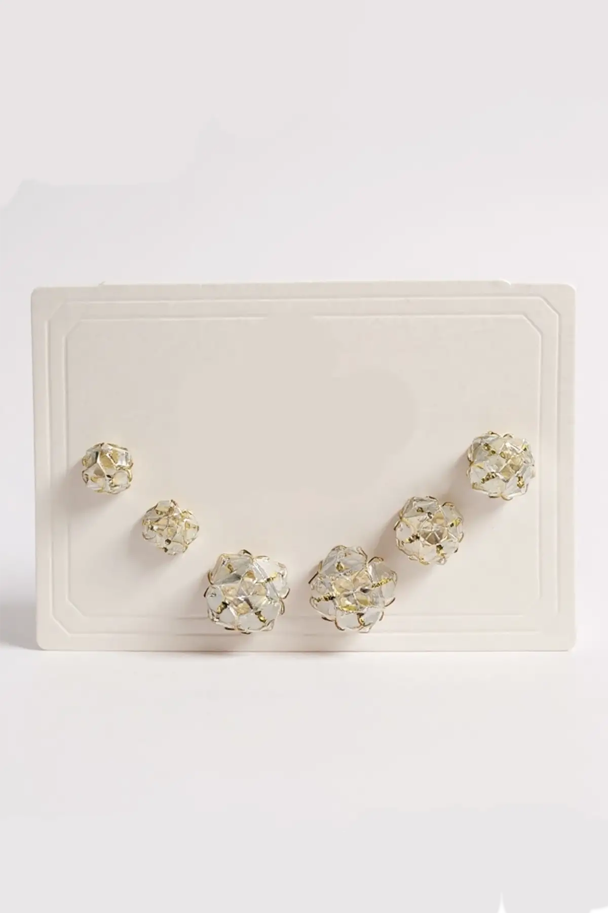 Gümüş Renk Taş Detaylı 14K Altın Kaplama TX 6'lı Küpe Set