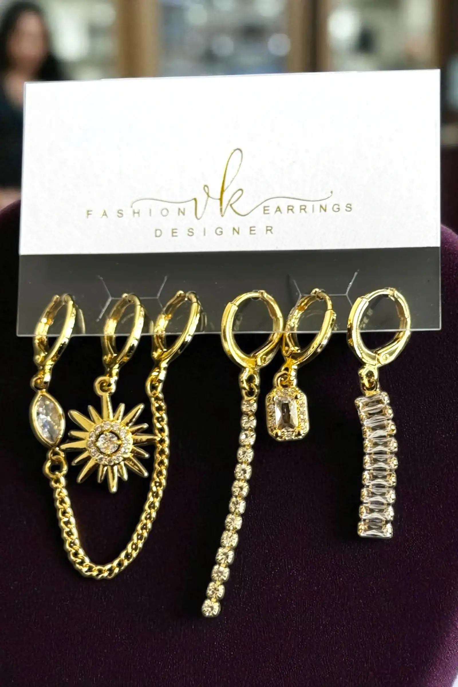 6'lı Altın Renk Taş Detaylı Küpe Set