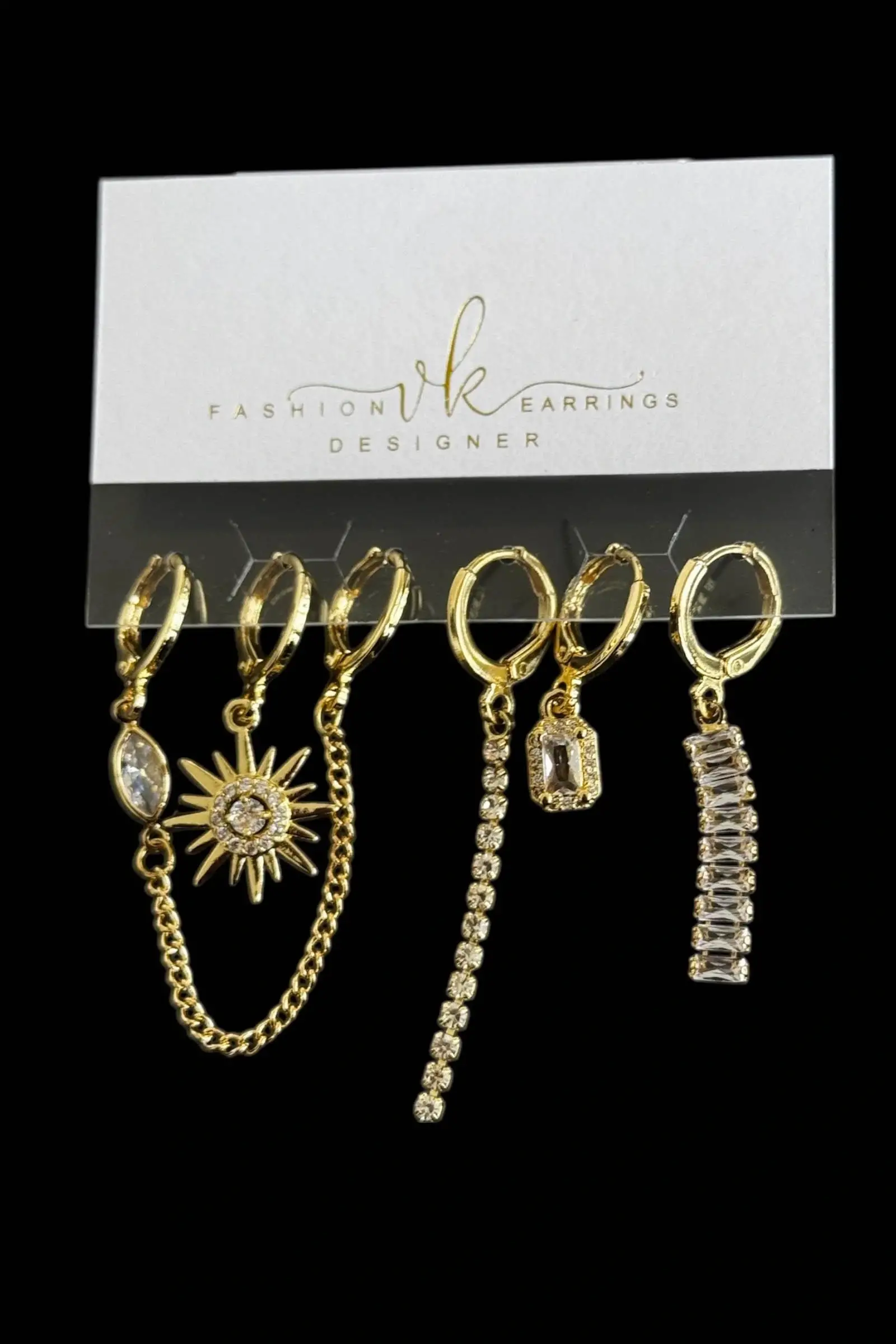 Altın Renk Taş Detaylı 6'lı Küpe Set