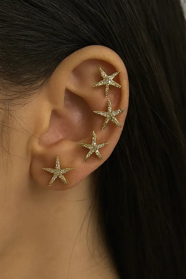 6'lı Altın Renk Yıldız Figürlü Küpe Set