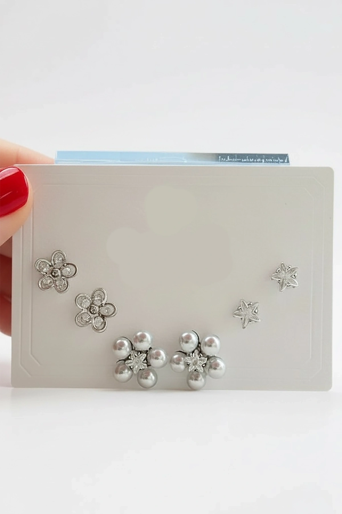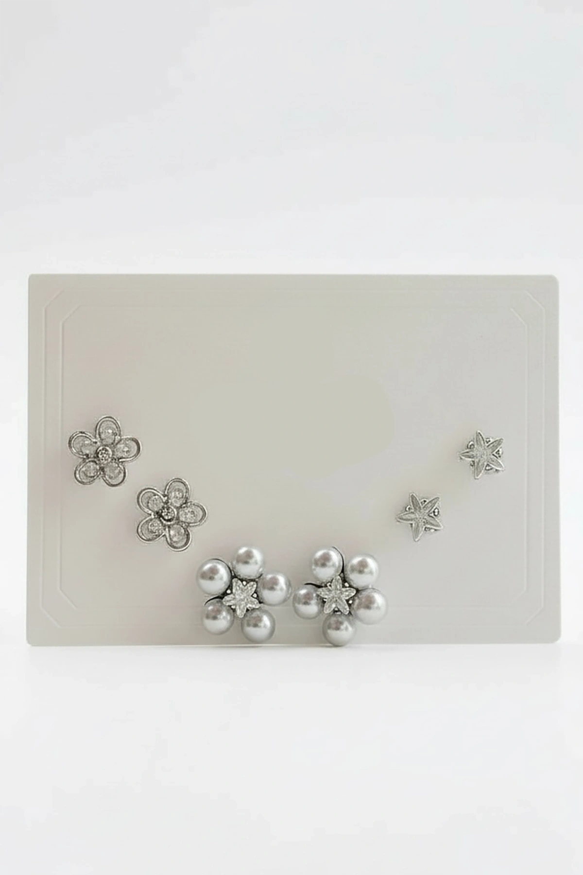 6'lı Gümüş Renk Çiçek Figürlü Taş Detaylı Küpe Set