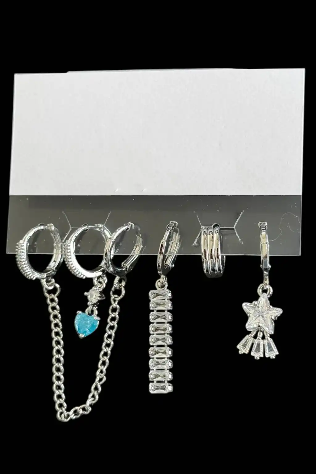 6'lı Gümüş Renk Karışık Figürlü Küpe Set
