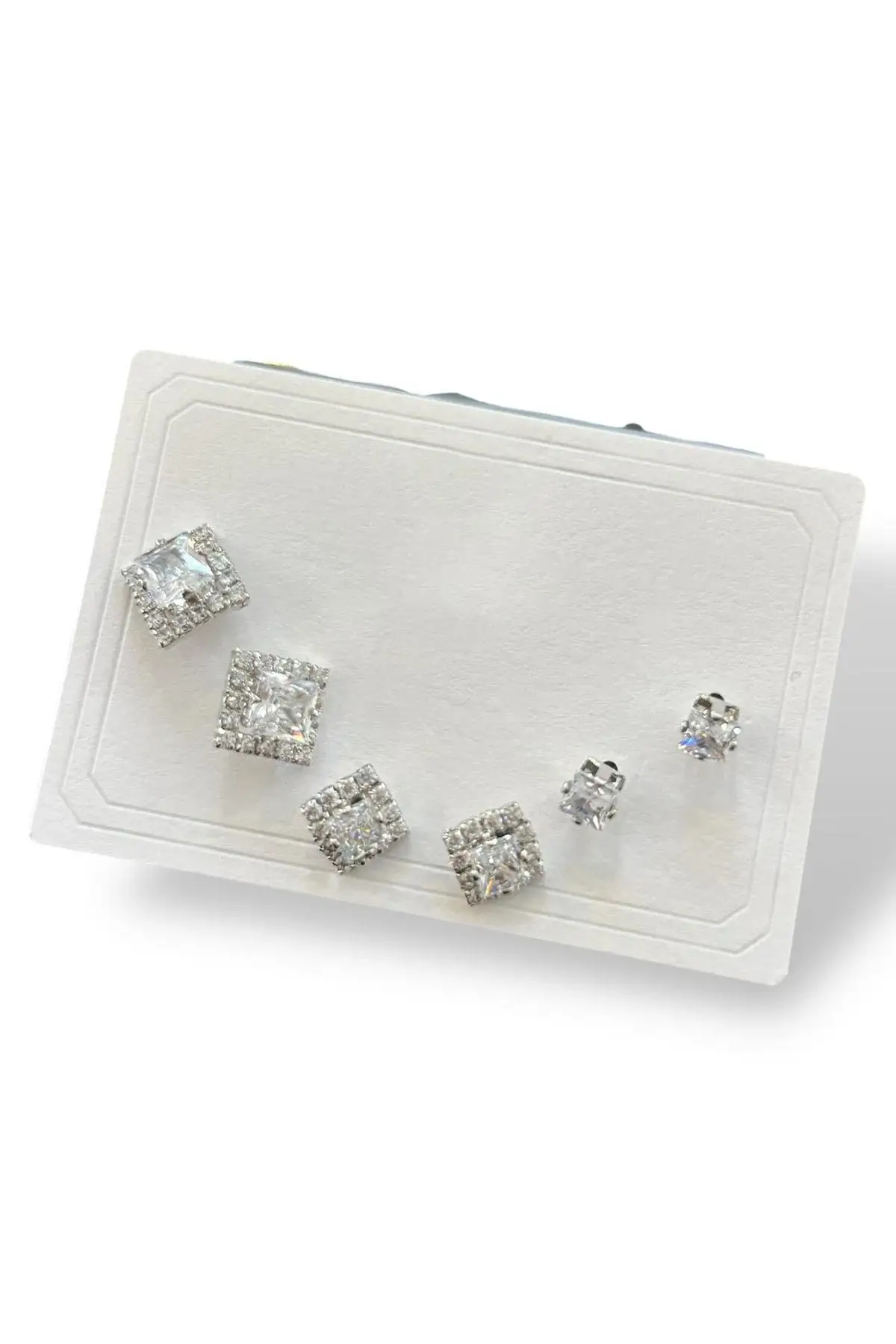 6'lı Gümüş Renk Taş Detaylı Küpe Set