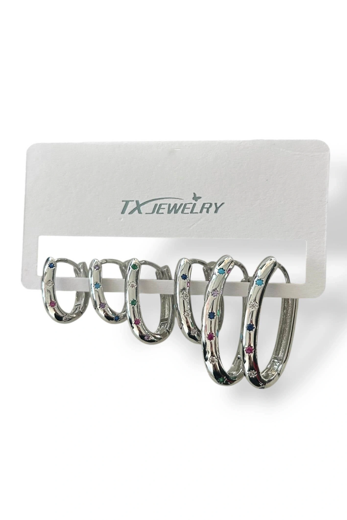 Modern ve enerjik tasarımıyla öne çıkan bu renkli yıldız taşlı halka küpe seti, günlük kombinlerinize eğlenceli bir ışıltı katmak için tasarlanmıştır. Parlak metal yüzeyi üzerine yerleştirilen çok renkli yıldız figürlü taşlar sayesinde sade ama dikkat çekici bir görünüm sunar.